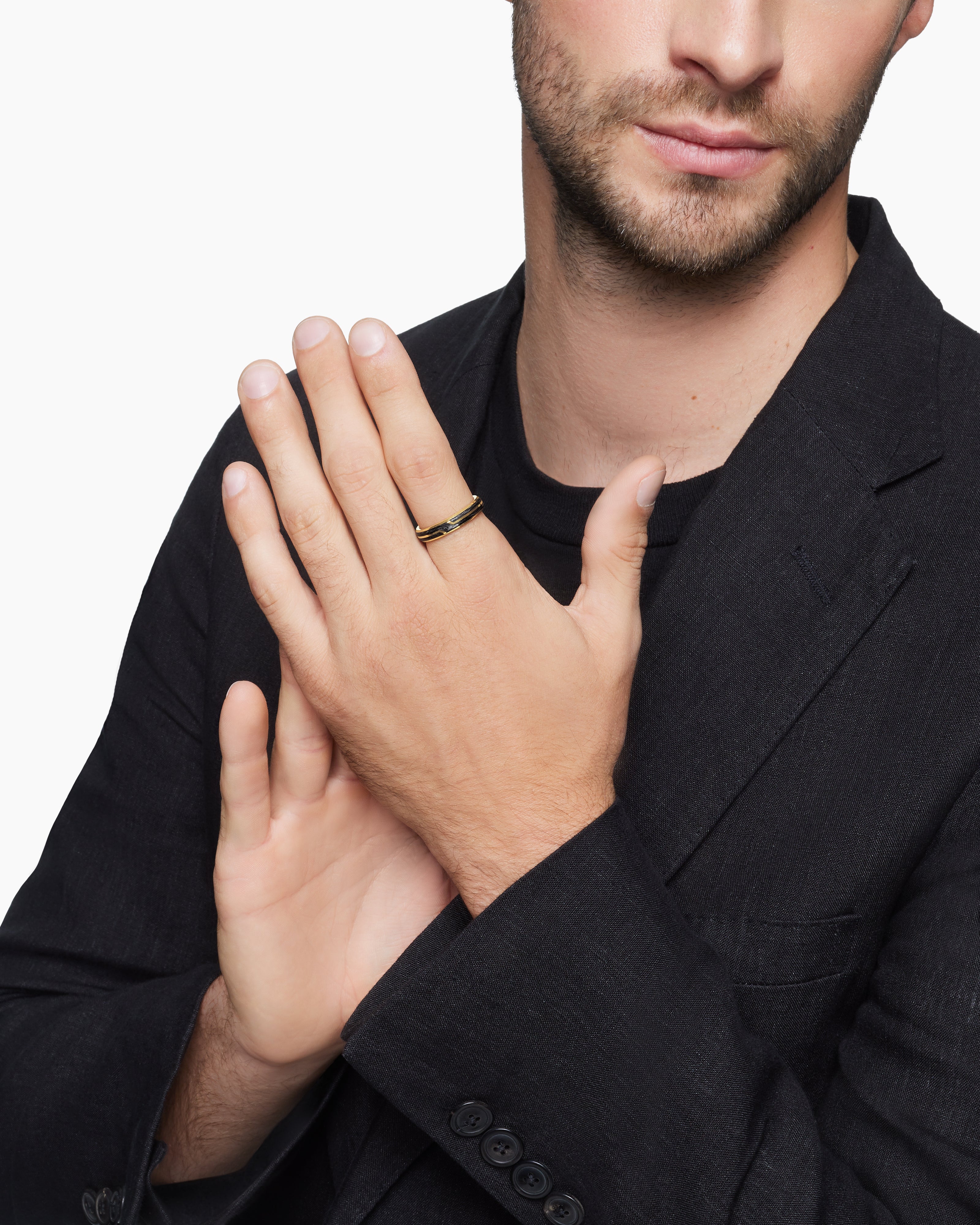 Forged Carbon Band Ring 18K Yellow Gold, 4mm