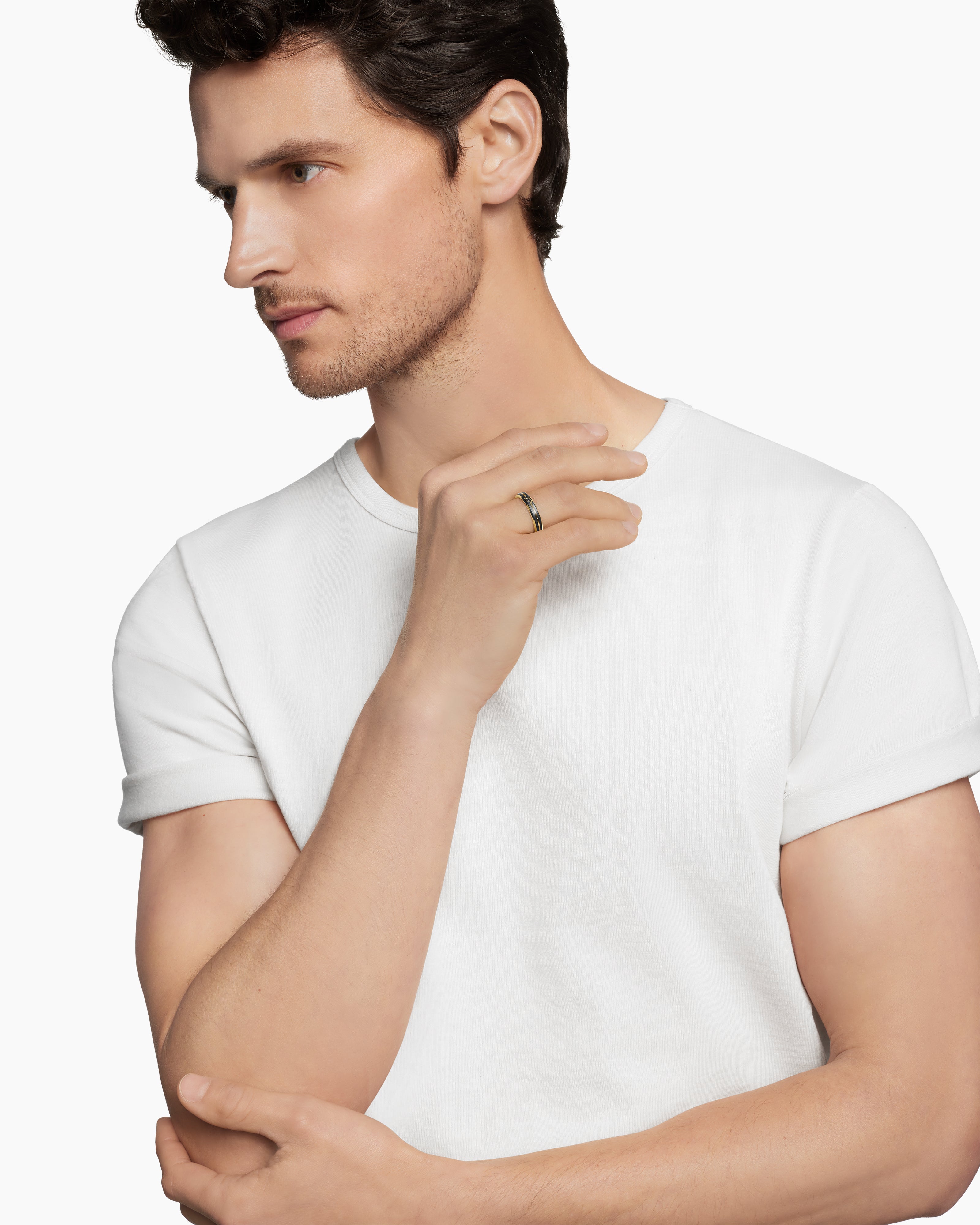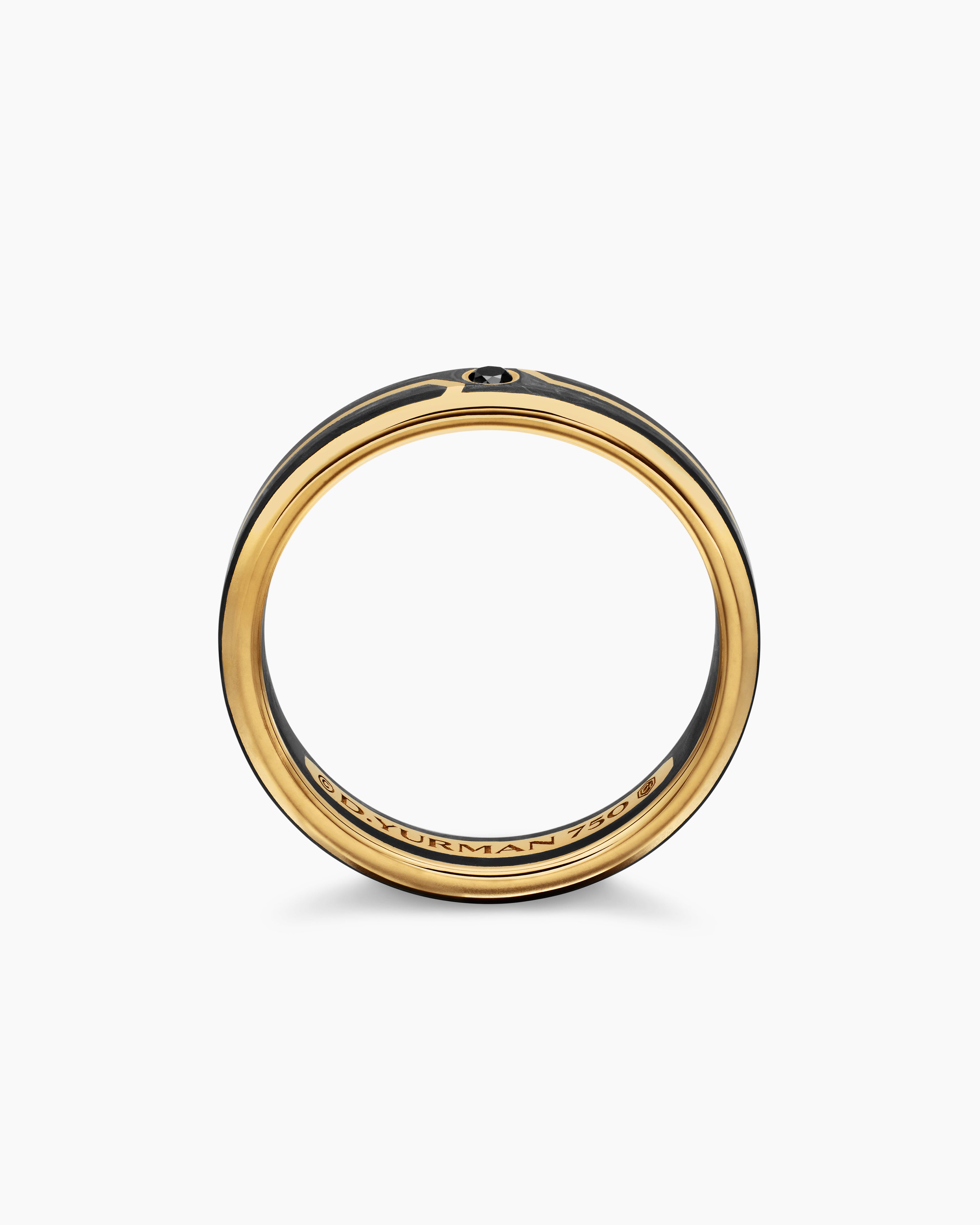 Forged Carbon Band Ring 18K Yellow Gold with Center Black Diamond, 4mm