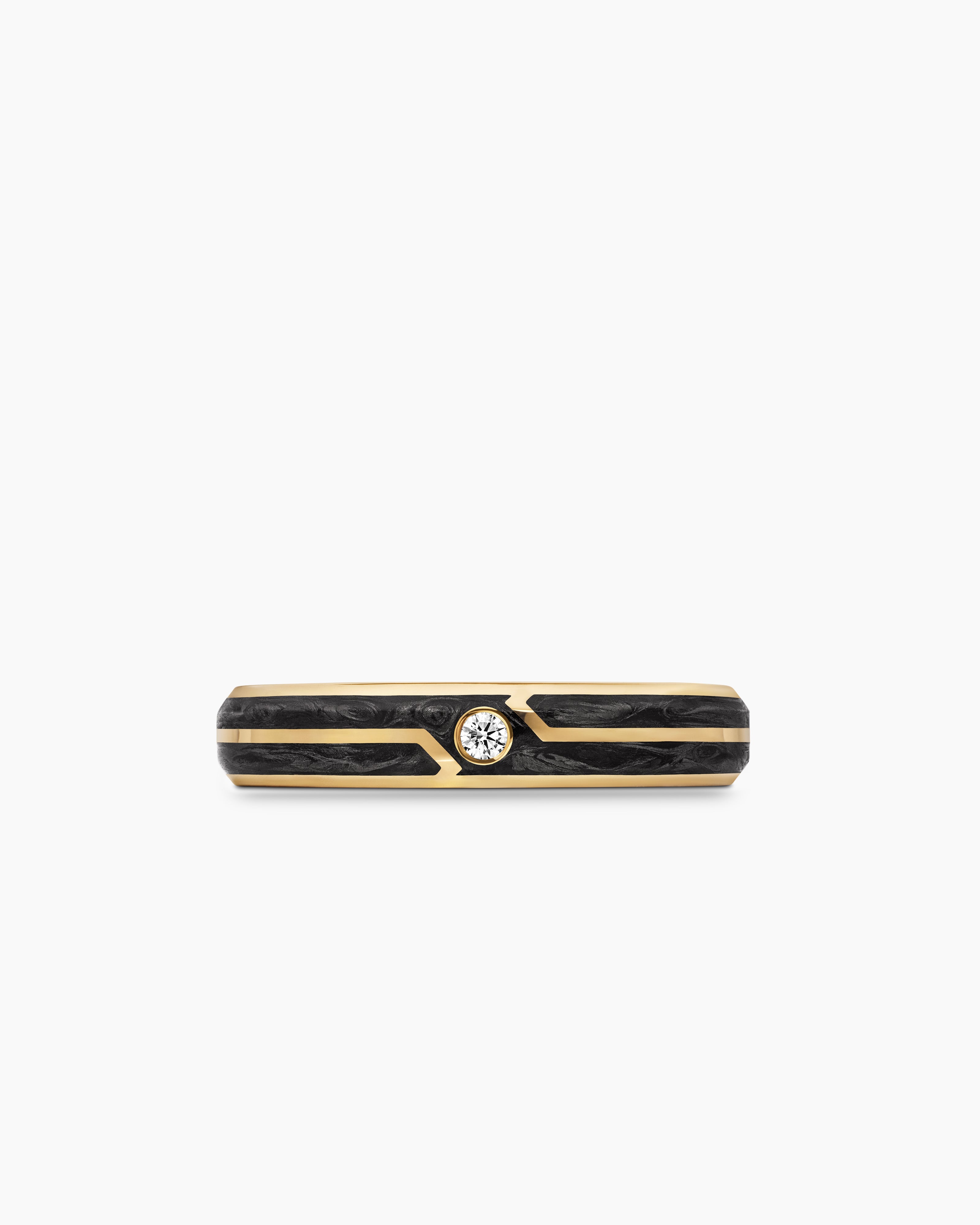 Forged Carbon Band Ring 18K Yellow Gold with Center Diamond, 4mm