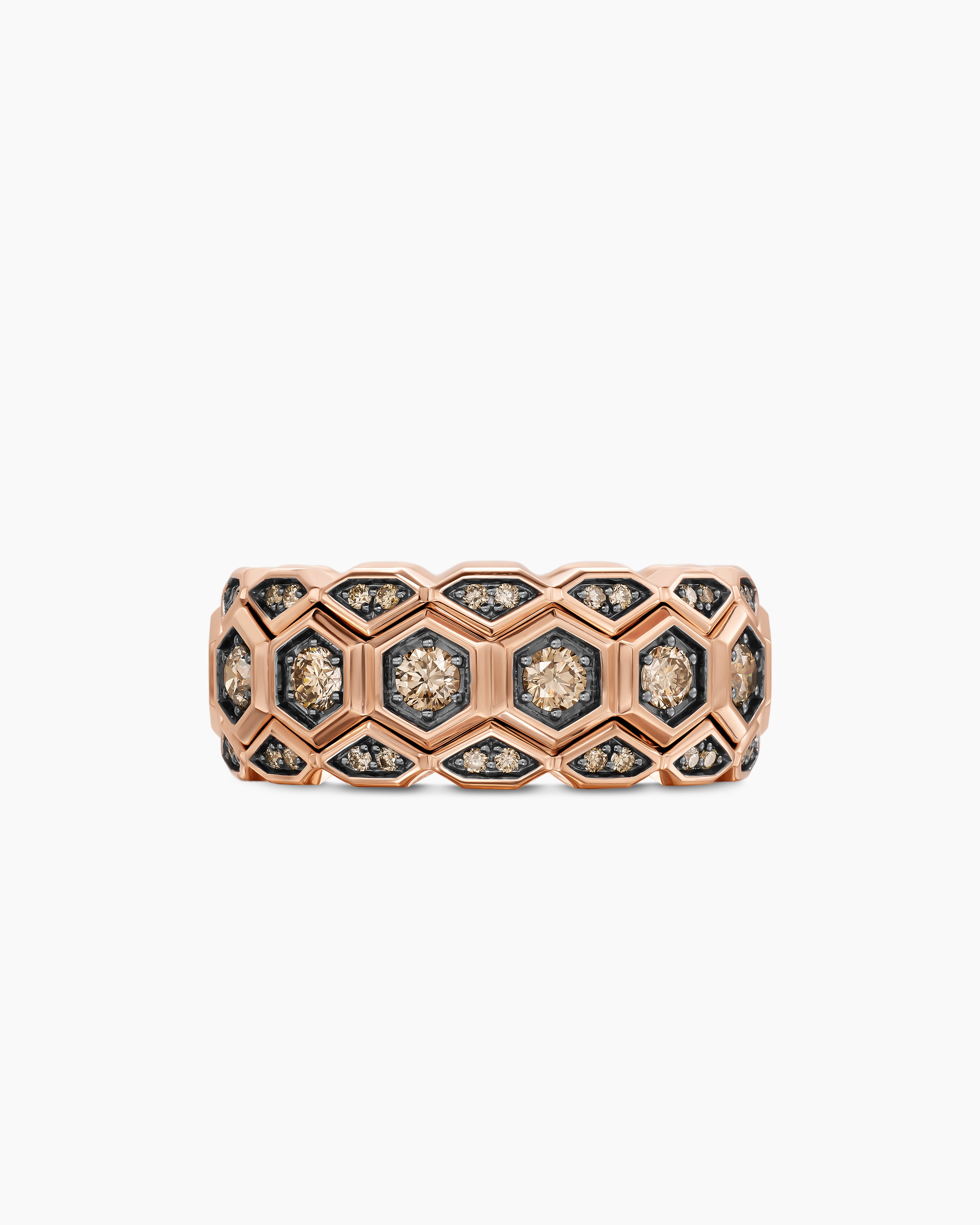 Hex Stack Ring 18K Rose Gold with Cognac Diamonds, 9.3mm
