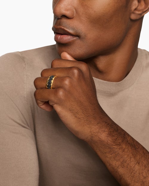 Hex Stack Ring Black Titanium with 18K Yellow Gold and Black Diamonds, 9.3mm