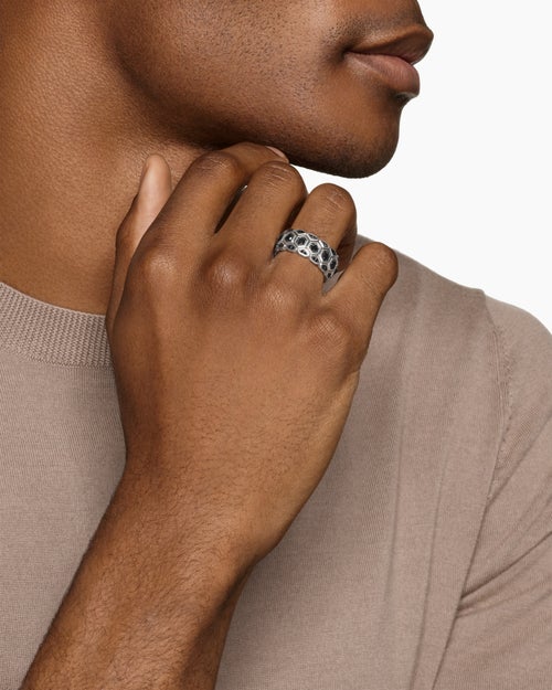 Hex Stack Ring Sterling Silver with Black Diamonds, 9.3mm