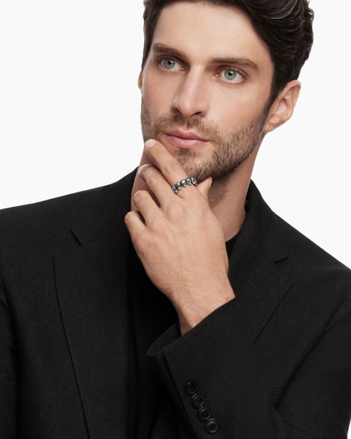 Use the white side of the provided David Yurman polishing cloth to gently wipe silver portions clean. Remove any remaining tarnish or impurities with mild diluted soap and warm water. Dry thoroughly before storing the design in its jewelry pouch.Complimentary cleaning is available at any David Yurman Boutique, simply schedule an appointment.