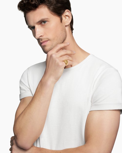 Use a soft cloth to gently wipe clean, then remove any remaining impurities with mild diluted soap. Rinse with warm water and dry thoroughly before storing in the provided jewelry pouch. Do not use abrasive cleaners, steamers or ultrasonic machines.Complimentary cleaning is available at any David Yurman Boutique, simply schedule an appointment.