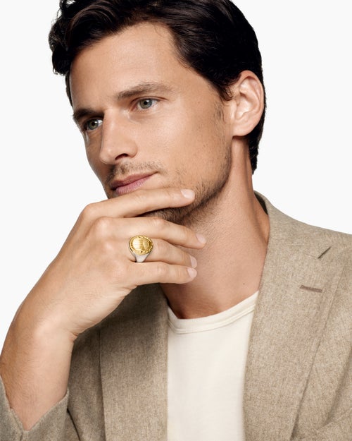 Petrvs® Scarab Signet Ring Sterling Silver with 18K Yellow Gold, 21.5mm