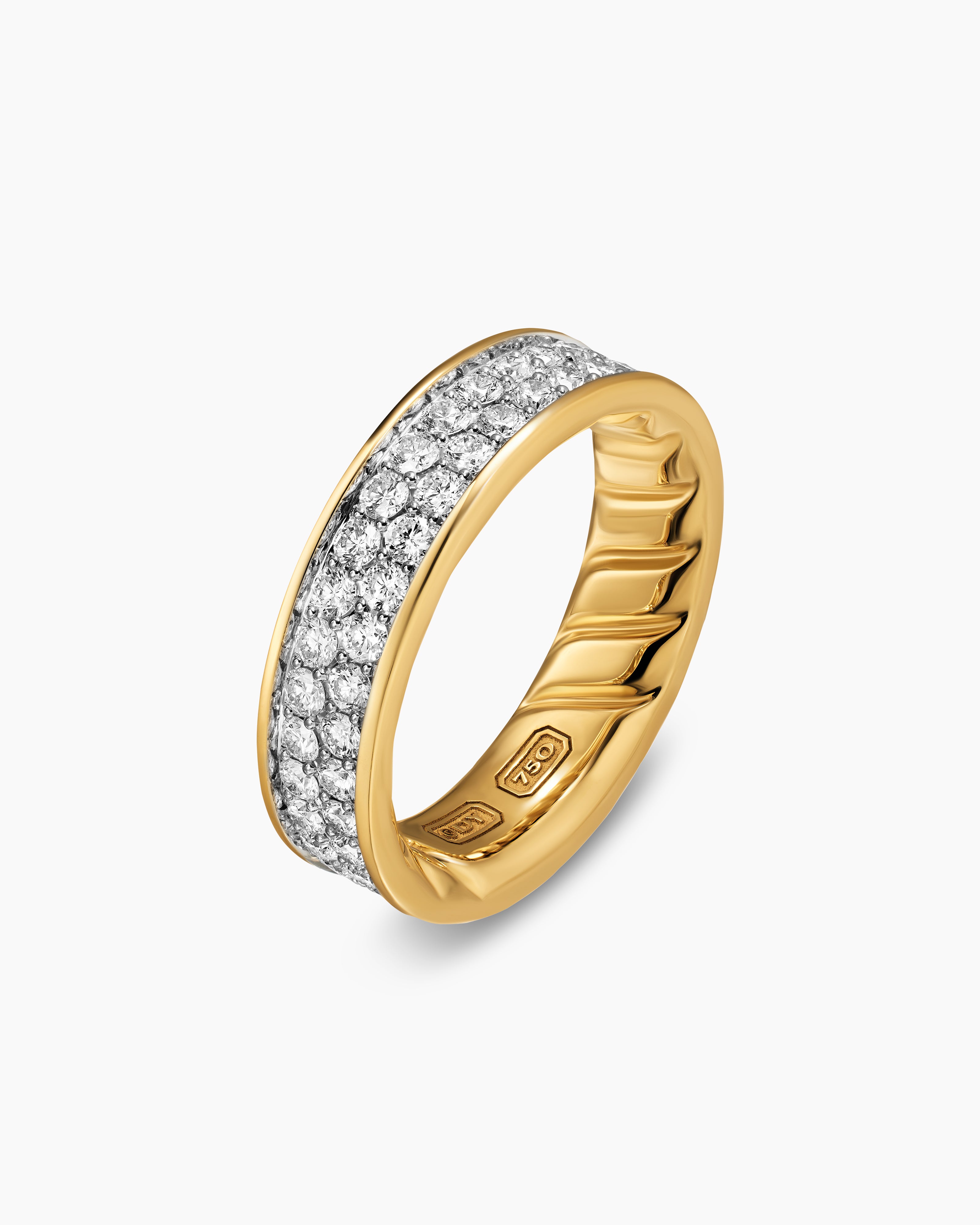 - Pavé-set diamonds, total carat weight ranges from 2.10 to 2.58 (dependent on size)