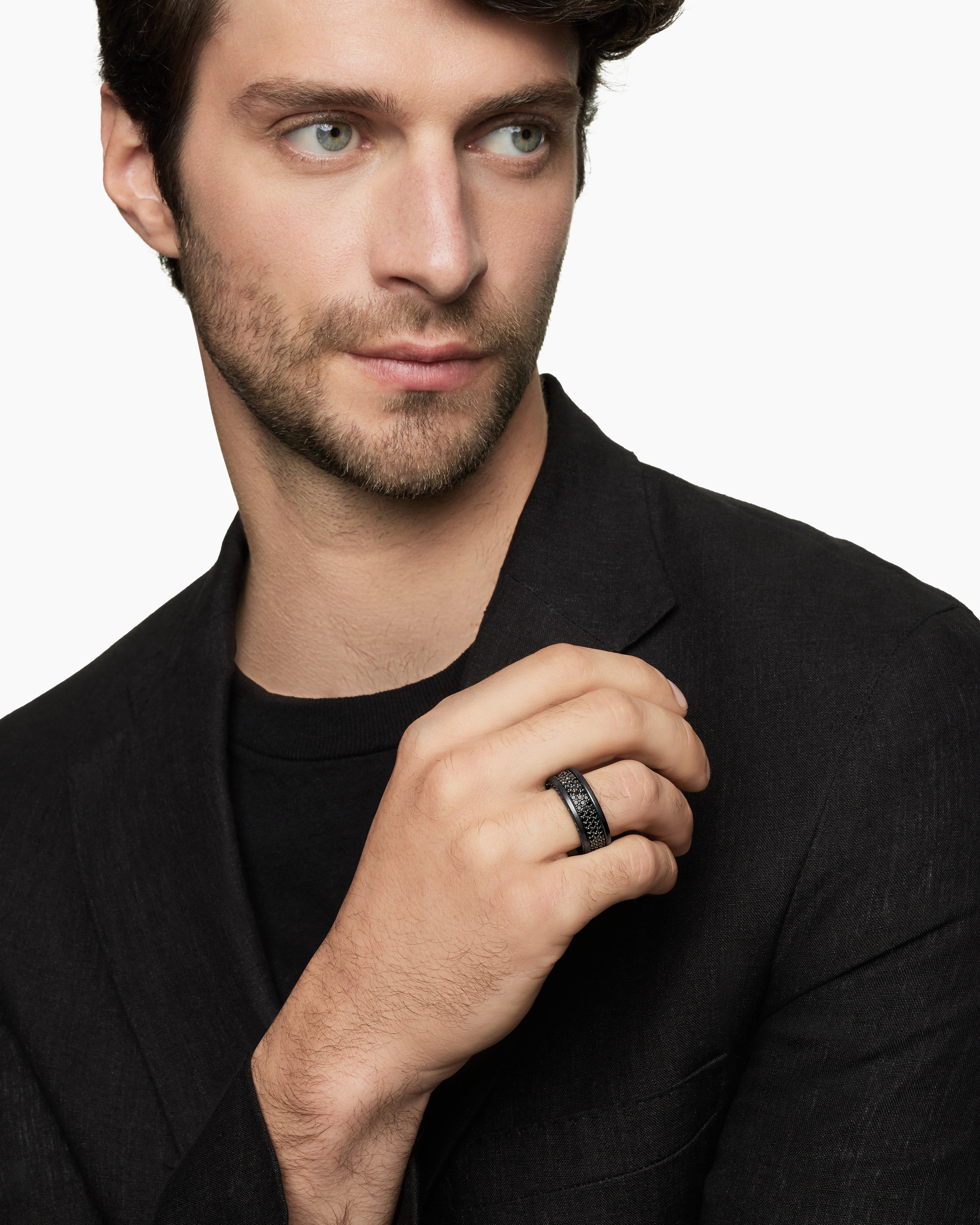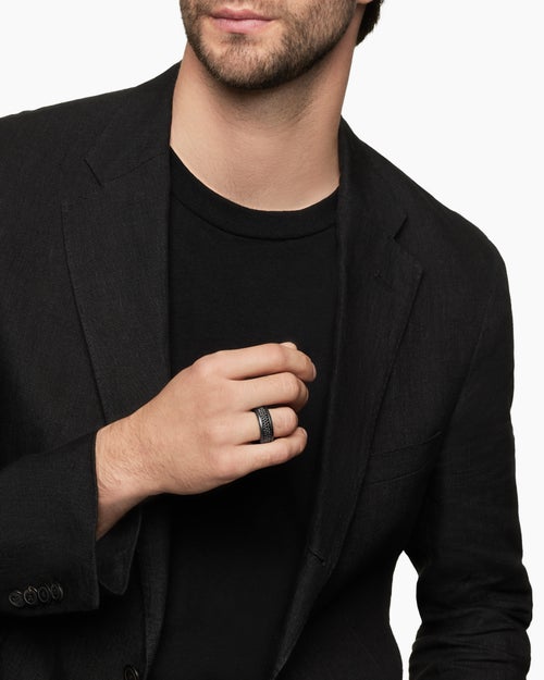 Streamline® Pavé Three Row Band Ring Black Titanium with Black Diamonds, 8.5mm