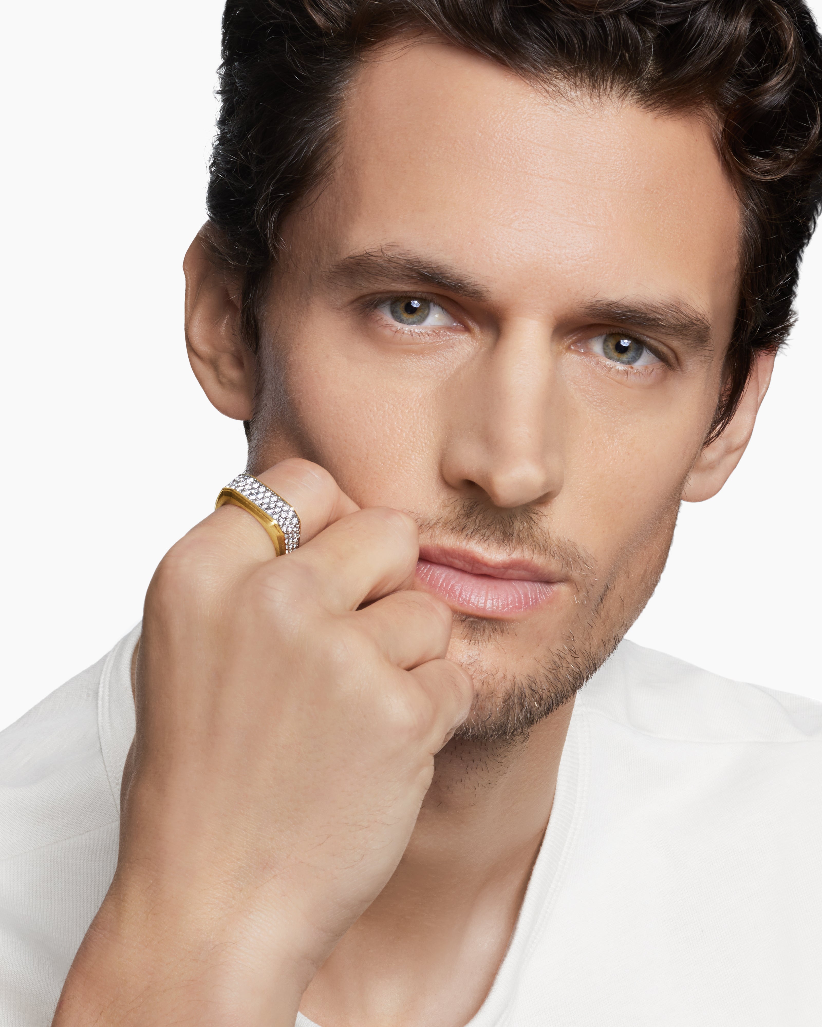 Streamline® Signet Ring 18K Yellow Gold with Diamonds, 10mm