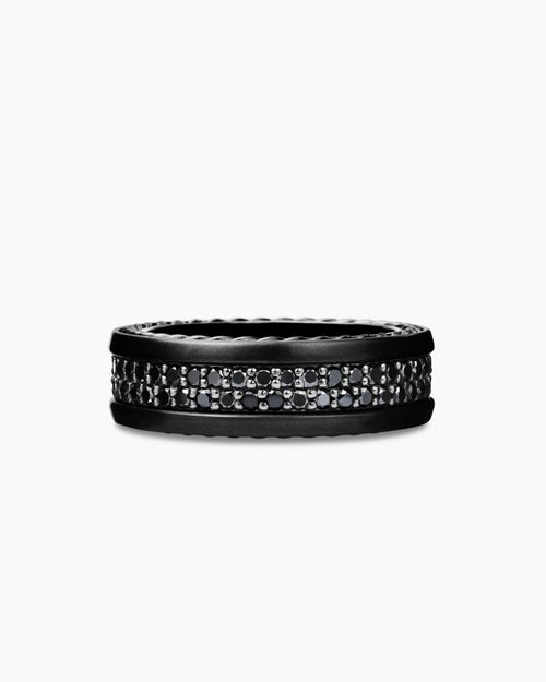 Streamline® Two Row Band Ring Black Titanium with Black Diamonds, 6.5mm
