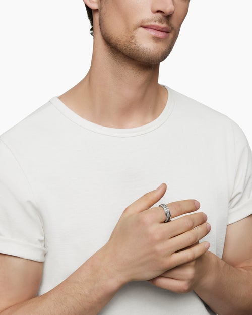 Streamline® Two Row Band Ring Sterling Silver with Diamonds, 6.5mm