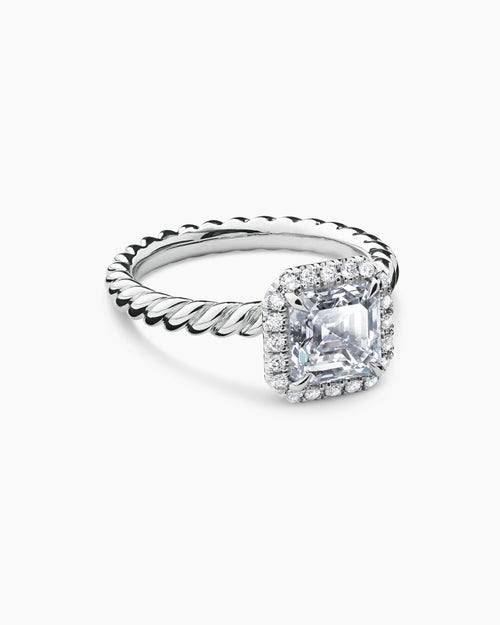 DY Cable Halo Engagement Ring Platinum, Asscher Cut