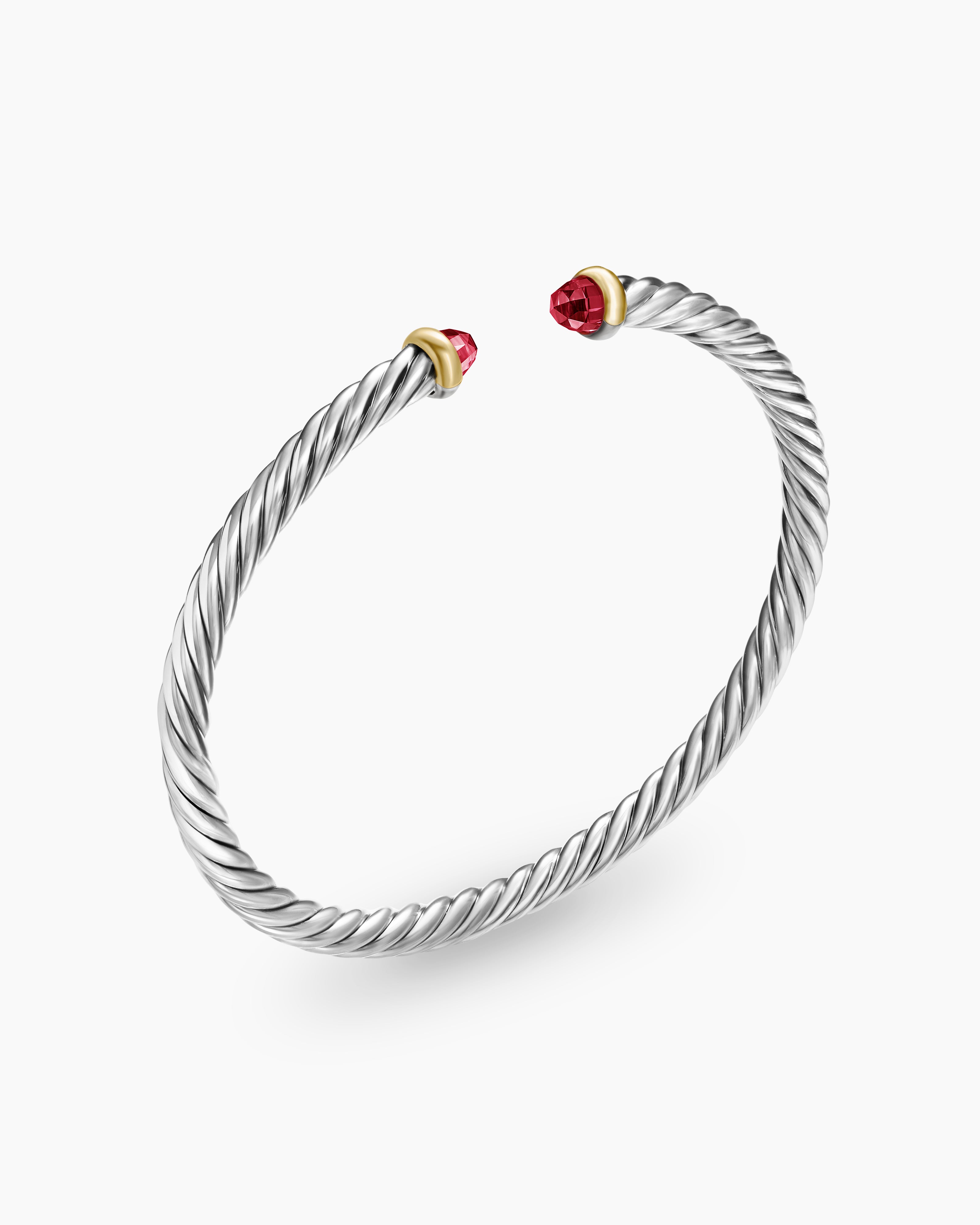 Cable Flex® Bracelet Sterling Silver with 14K Yellow Gold and Rhodolite Garnet, 4mm