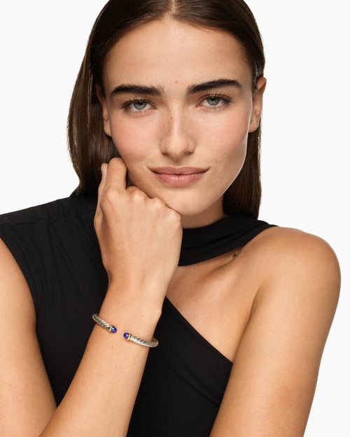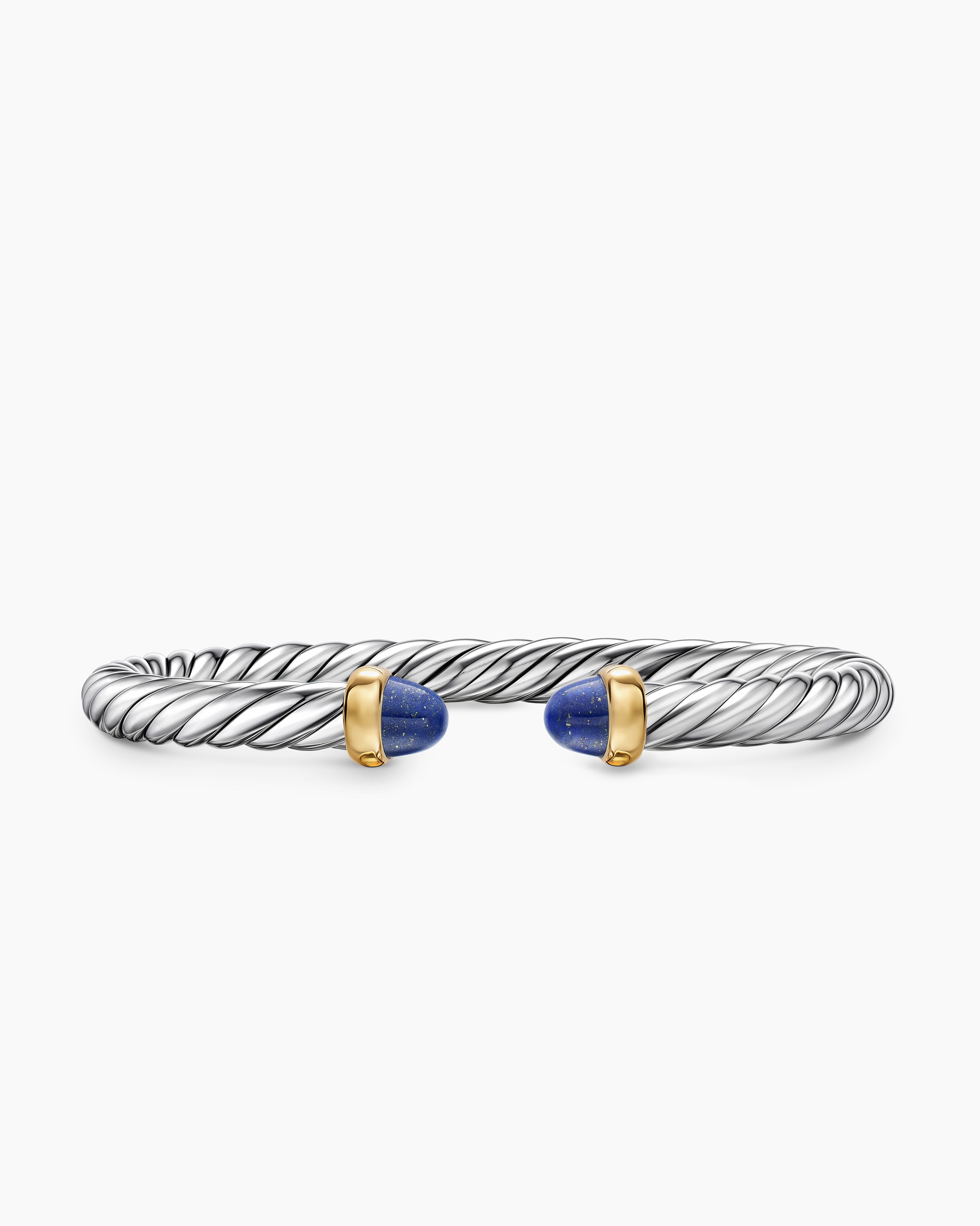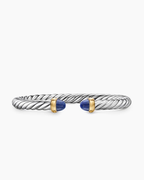 Cable Flex® Bracelet Sterling Silver with 14K Yellow Gold and Lapis, 6mm
