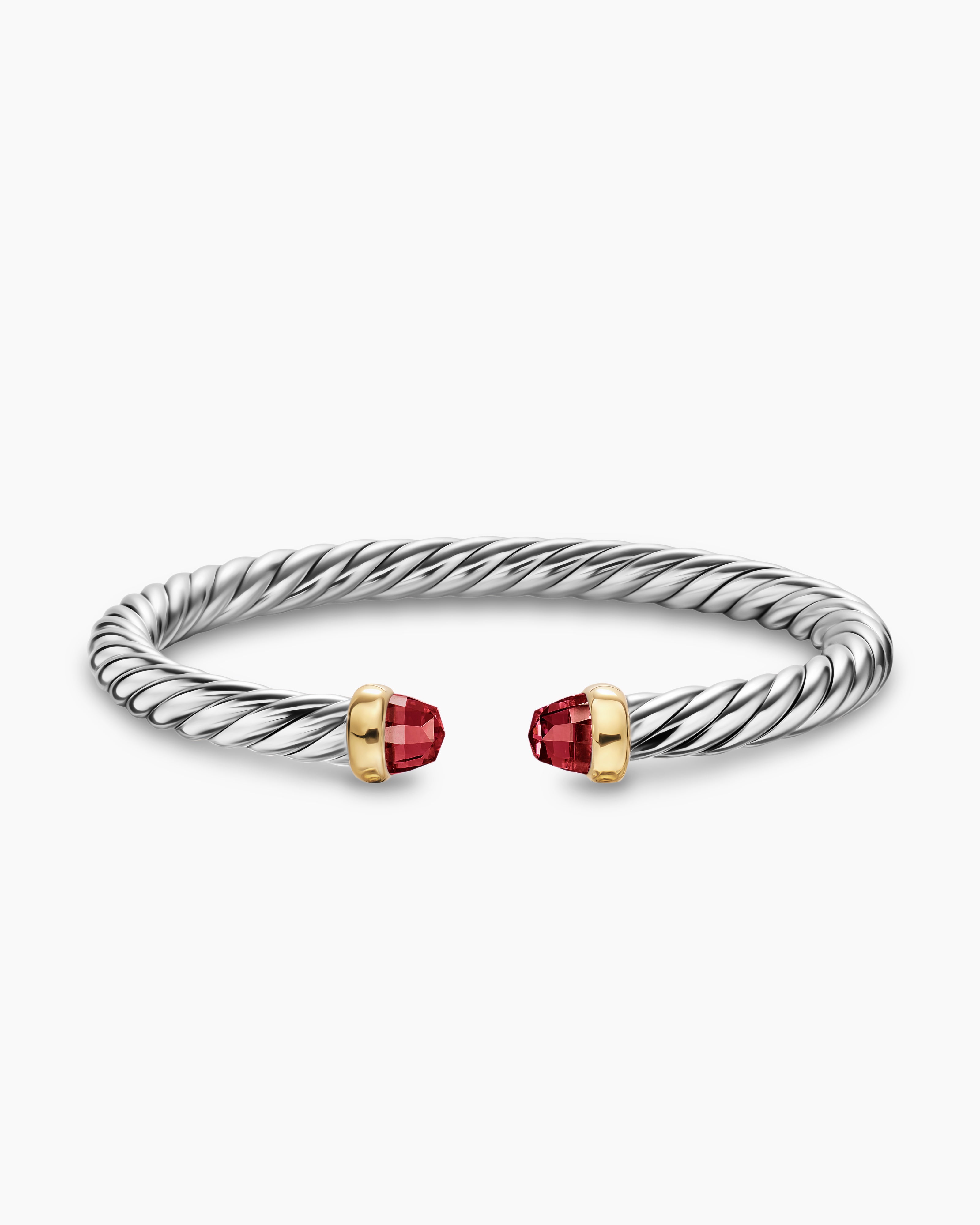 Cable Flex® Bracelet Sterling Silver with 14K Yellow Gold and Rhodolite Garnet, 6mm