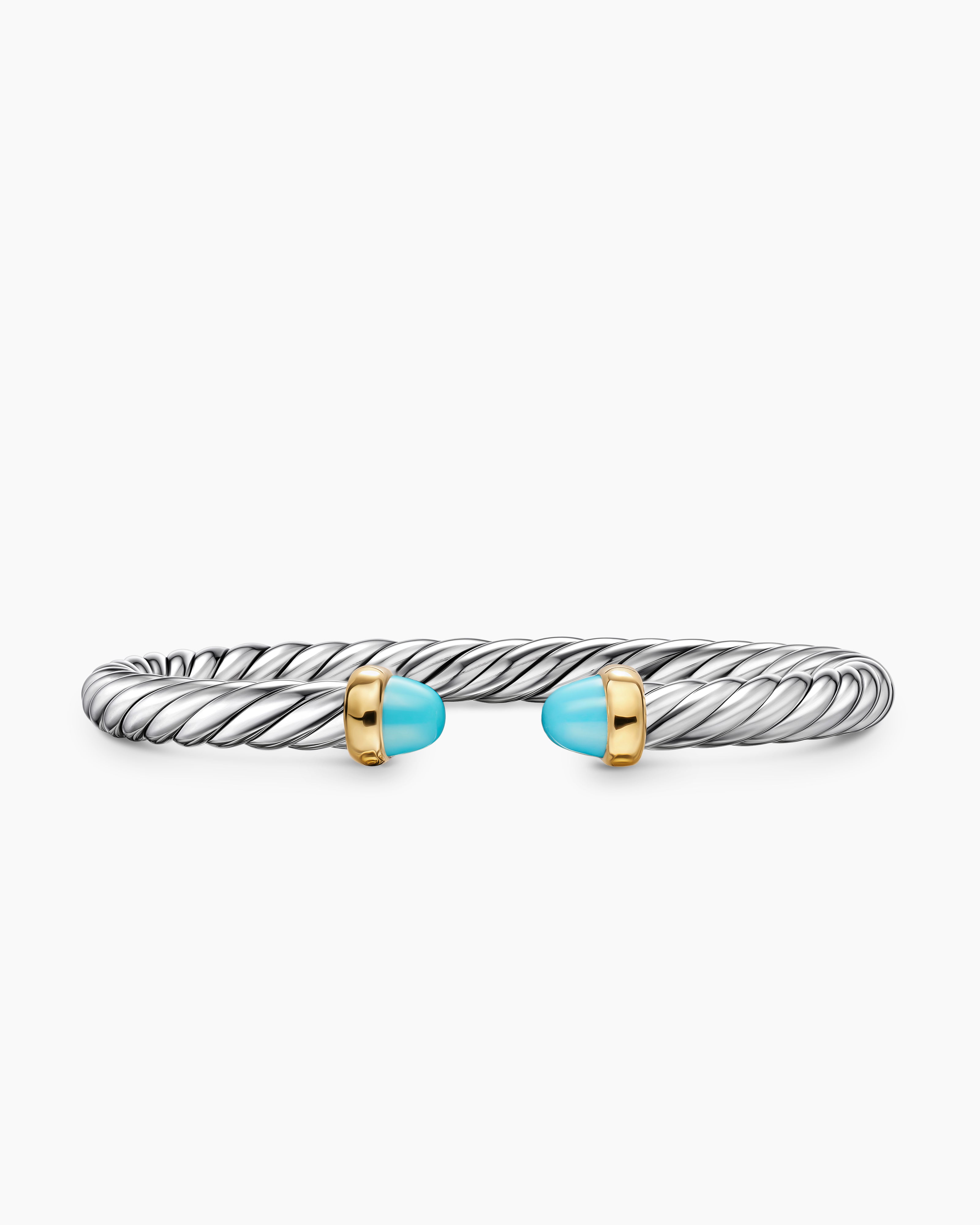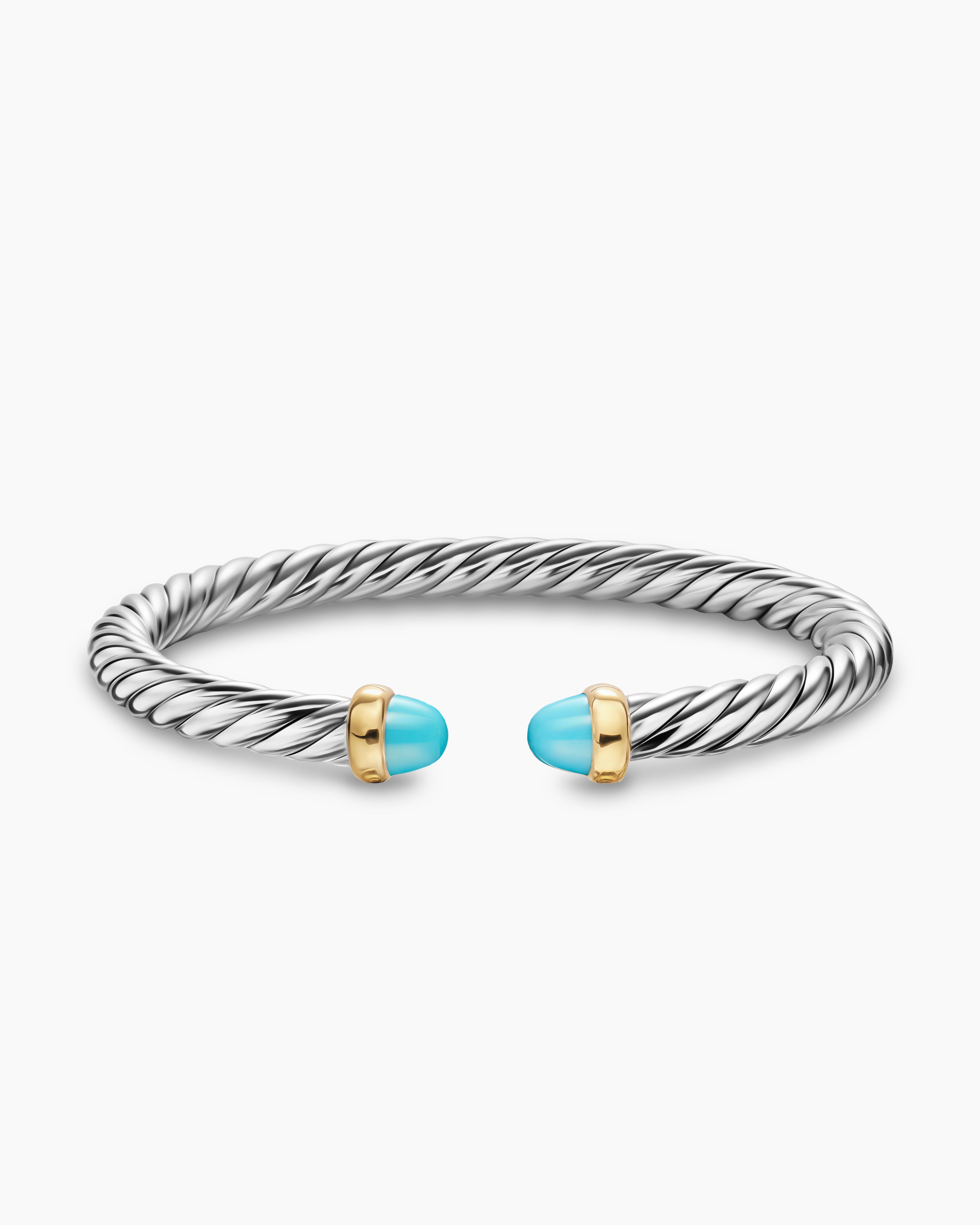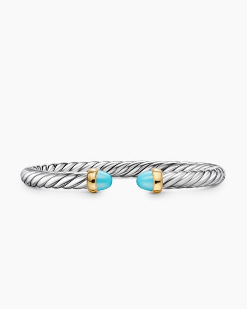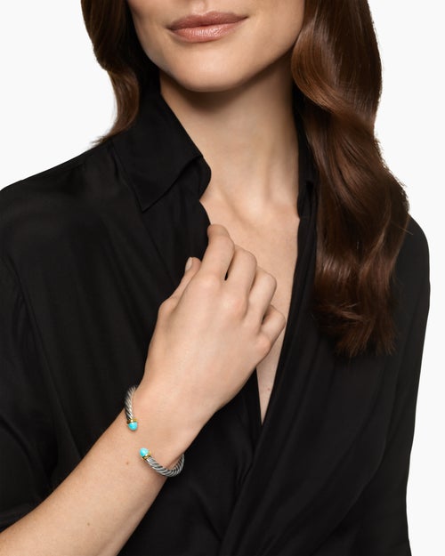Cable Flex® Bracelet Sterling Silver with 14K Yellow Gold and Turquoise, 6mm