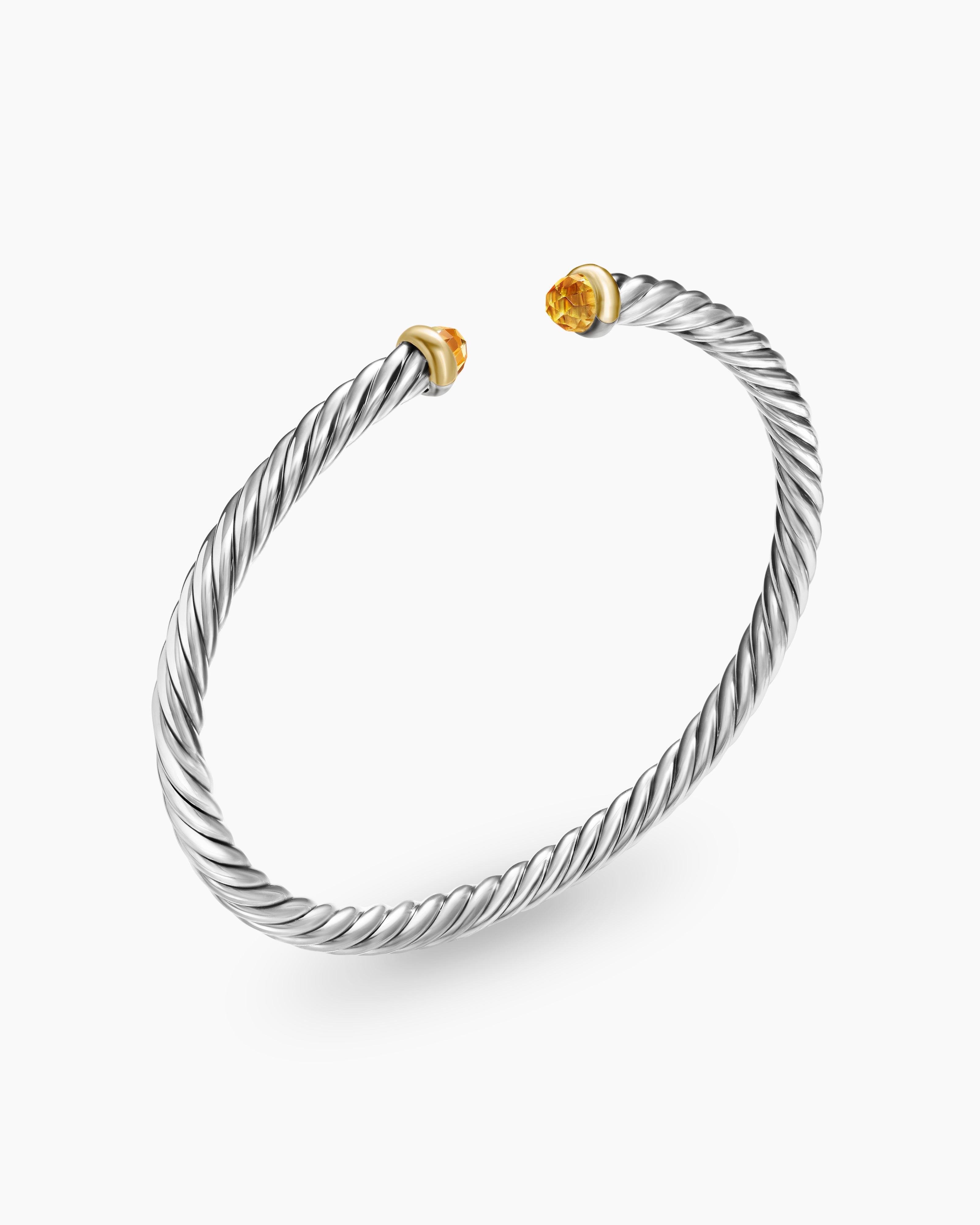 Cable Flex® Bracelet Sterling Silver with 14K Yellow Gold and Citrine, 4mm