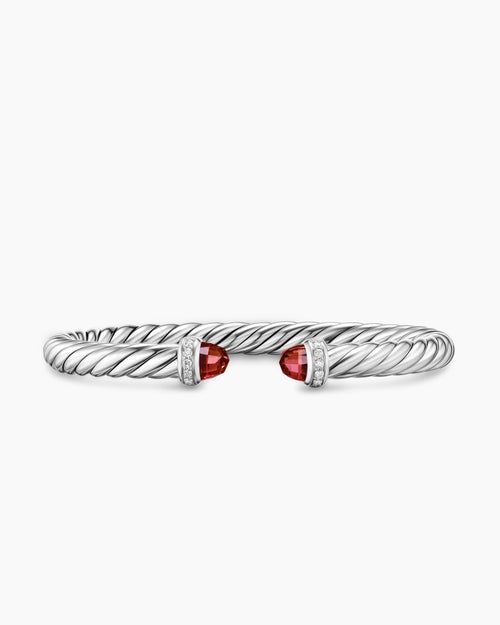 Cable Flex® Bracelet Sterling Silver with Rhodolite Garnet and Diamonds, 6mm