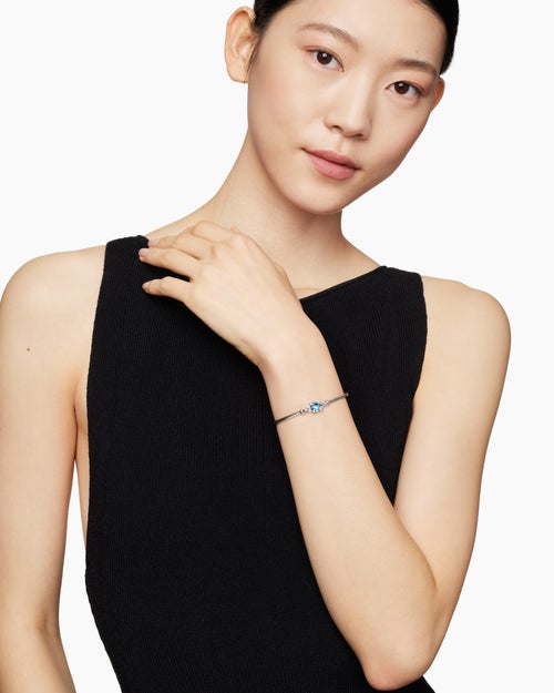 Chatelaine® Bracelet Sterling Silver with Blue Topaz and Diamonds, 3mm