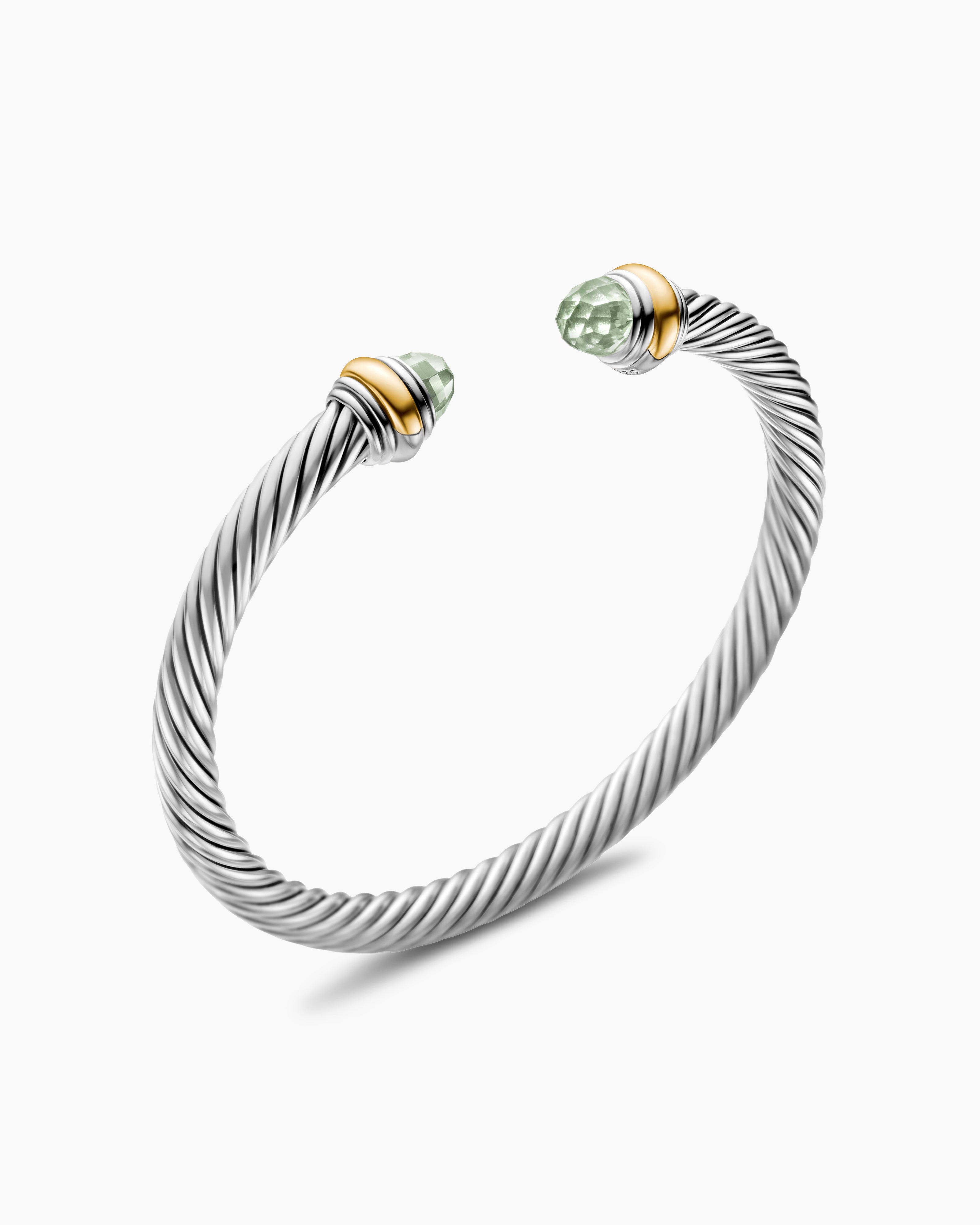 Classic Cable Bracelet Sterling Silver with 14K Yellow Gold and Prasiolite, 5mm