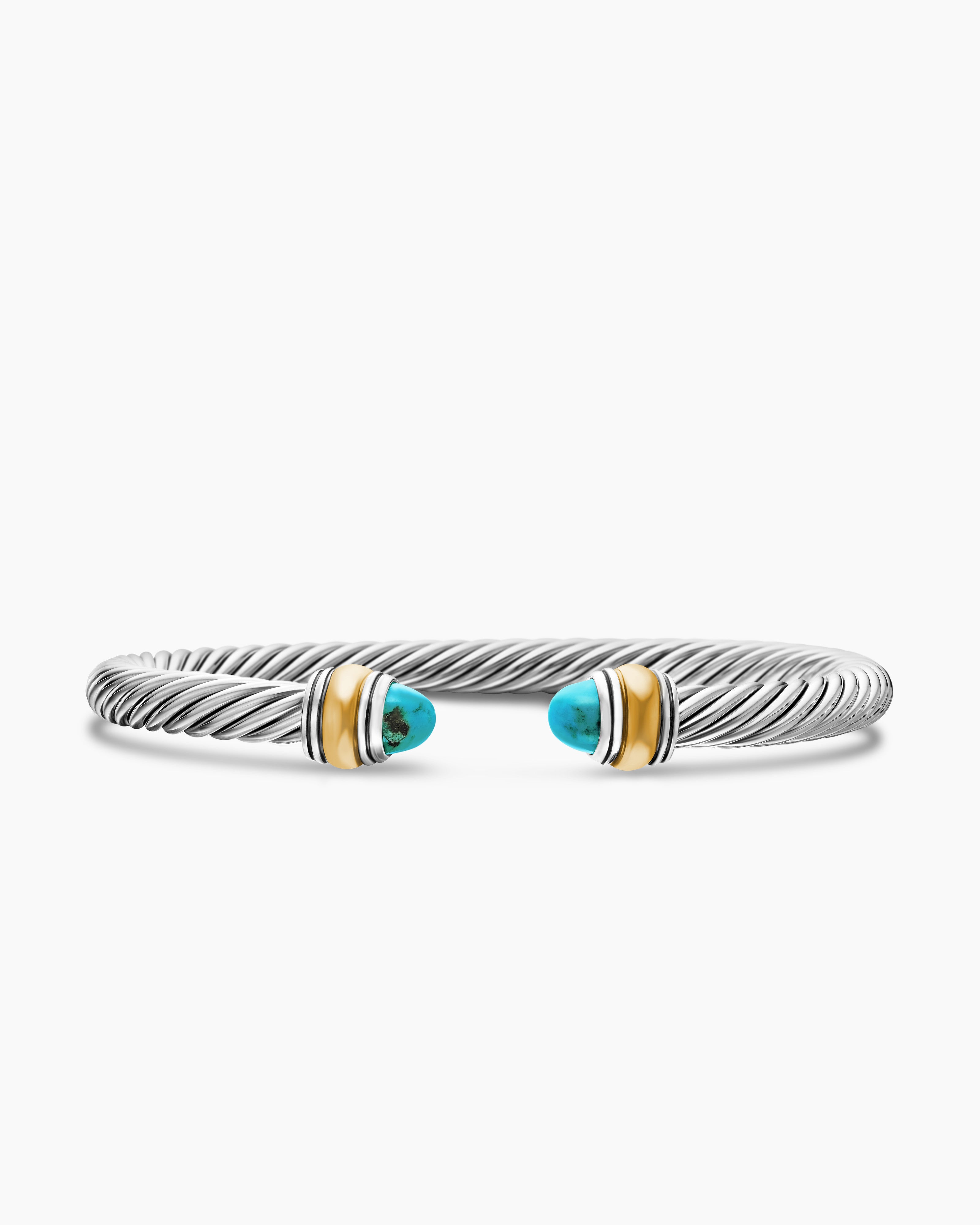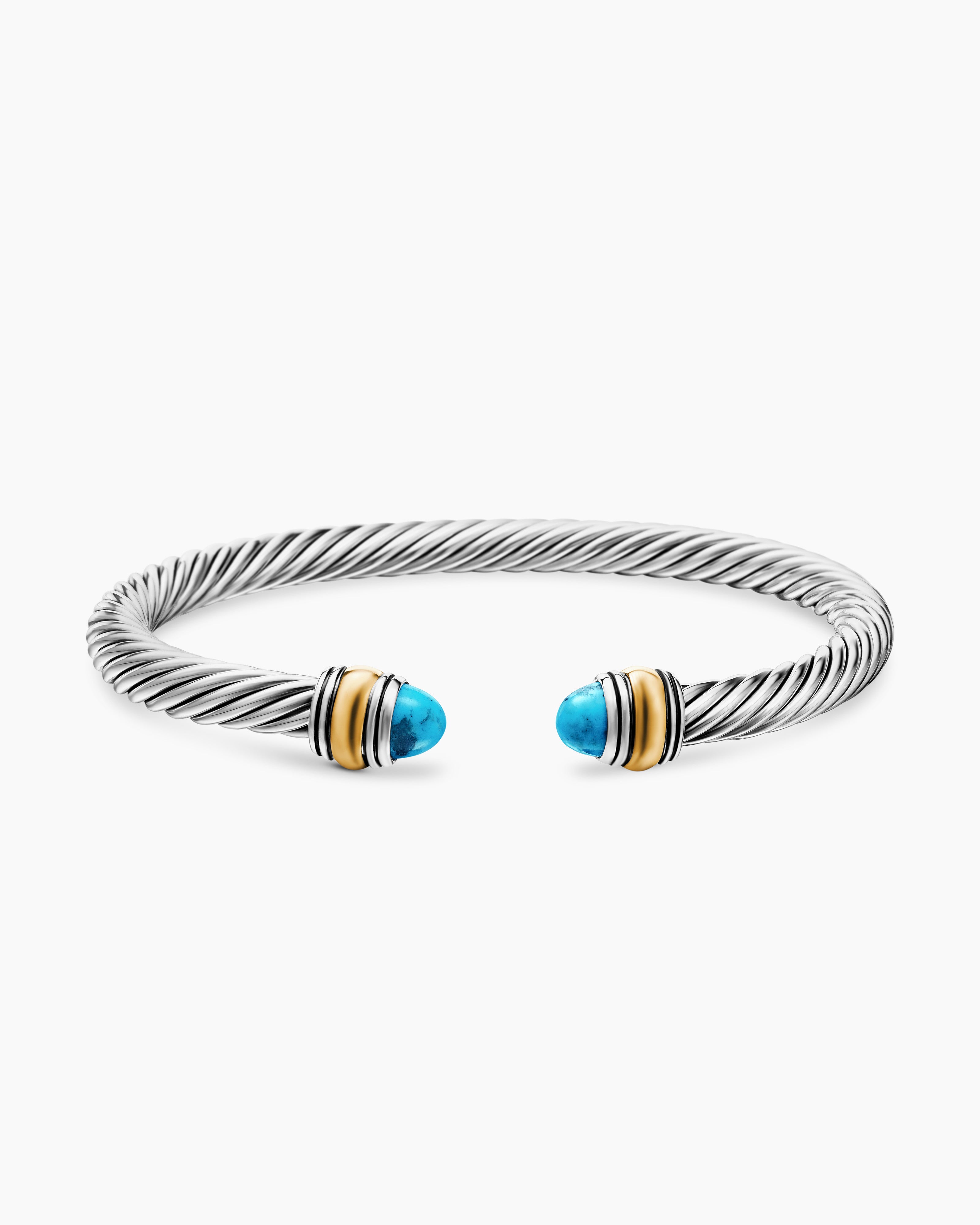 Classic Cable Bracelet Sterling Silver with 14K Yellow Gold and Turquoise, 5mm