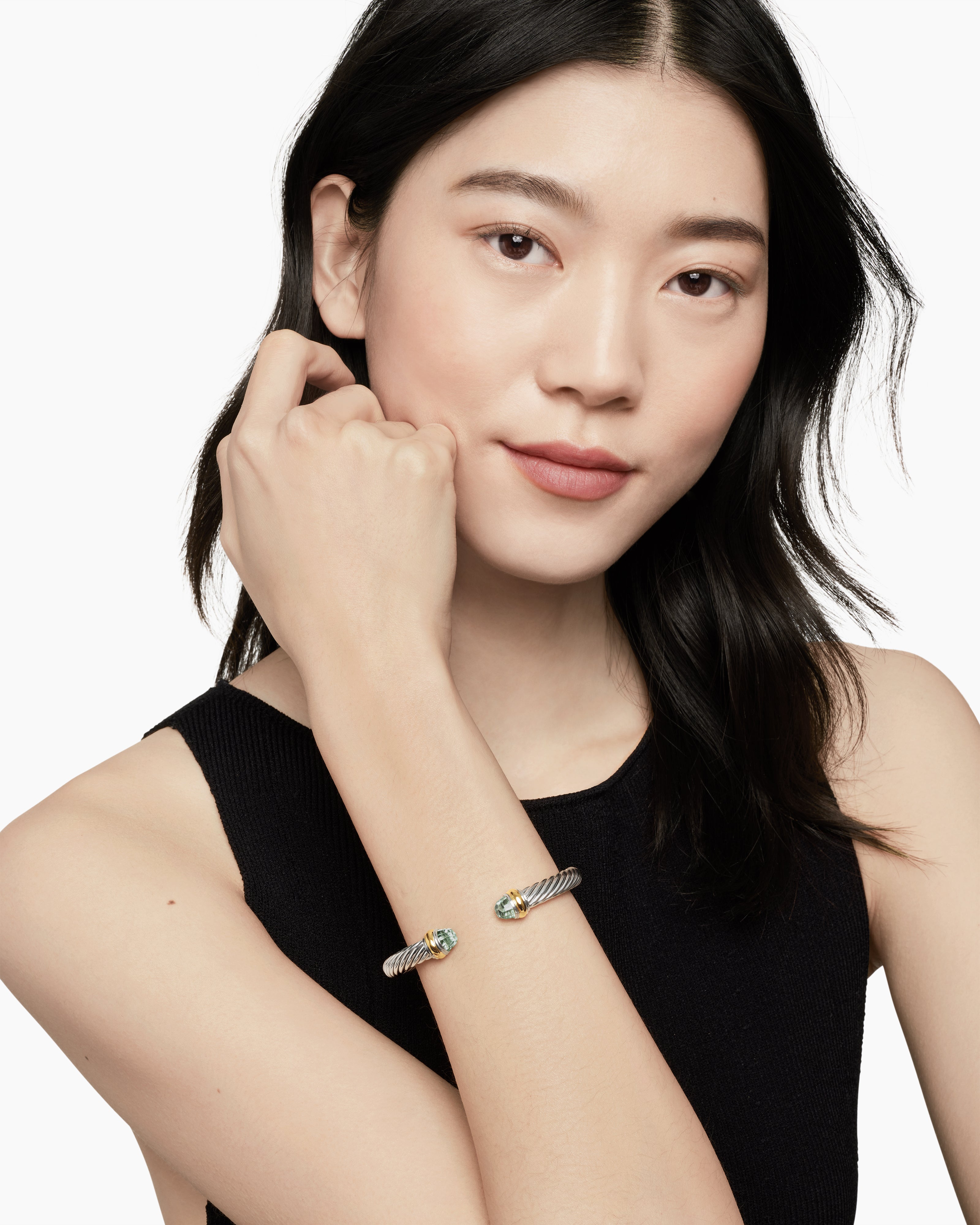 Classic Cable Bracelet Sterling Silver with 14K Yellow Gold and Prasiolite, 7mm