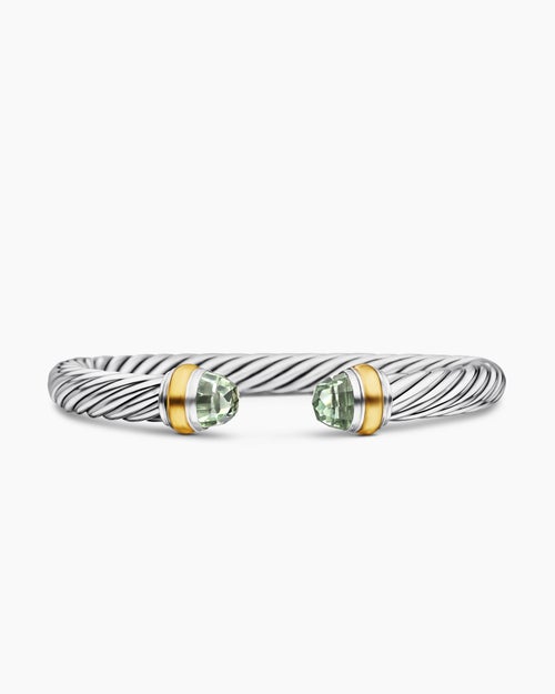 Classic Cable Bracelet Sterling Silver with 14K Yellow Gold and Prasiolite, 7mm