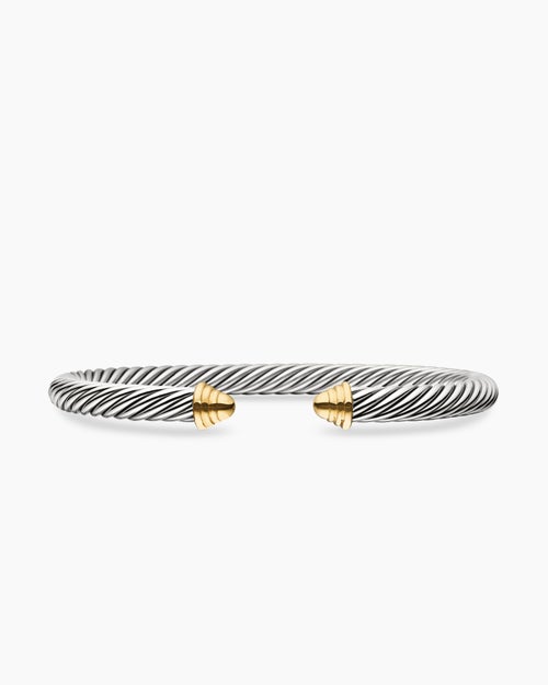 Classic Cable Bracelet Sterling Silver with 14K Yellow Gold Domes, 5mm