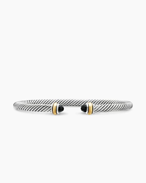 Classic Cable Bracelet Sterling Silver with 18K Yellow Gold and Black Onyx, 4mm
