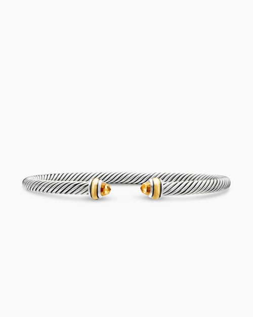 Classic Cable Bracelet Sterling Silver with 18K Yellow Gold and Citrine, 4mm