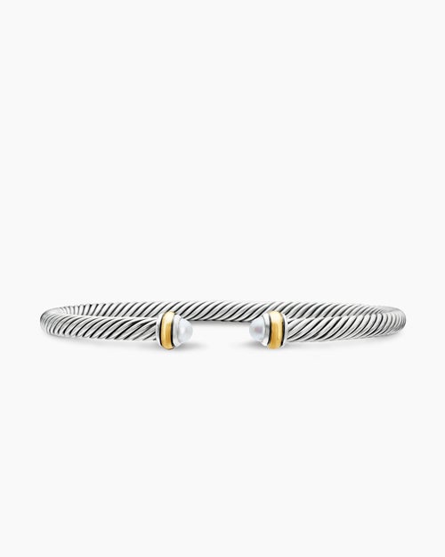 Classic Cable Bracelet Sterling Silver with 18K Yellow Gold and Pearls, 4mm