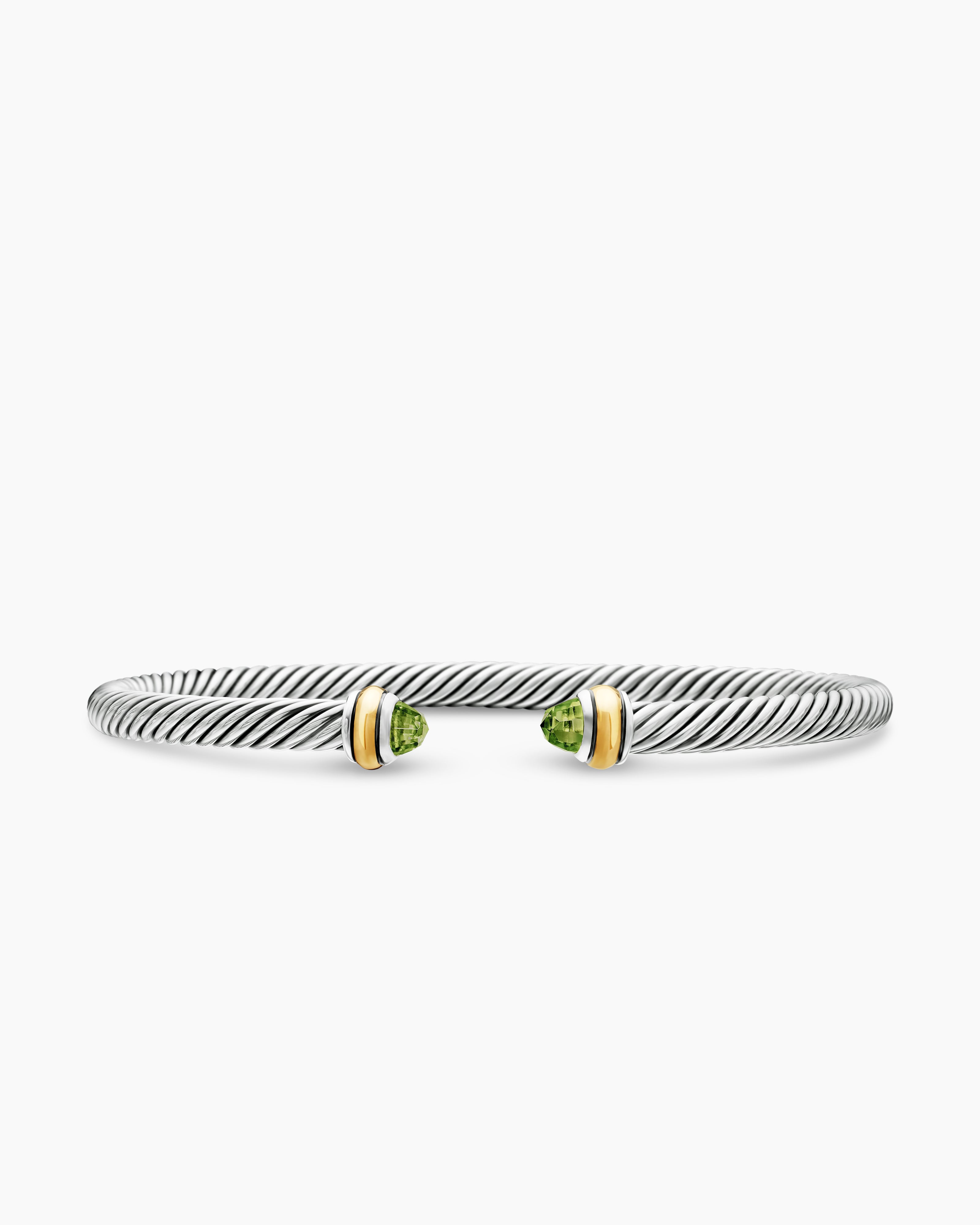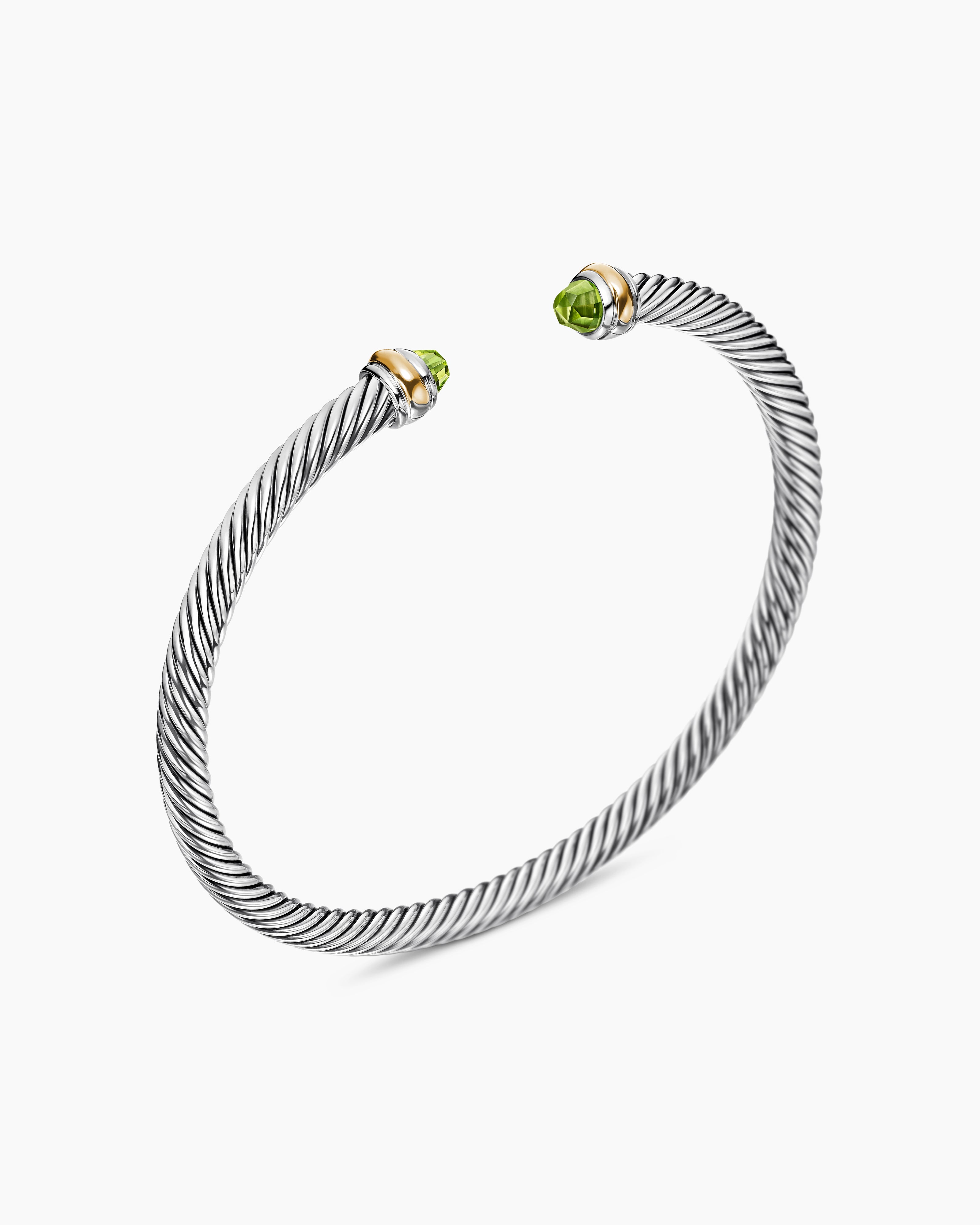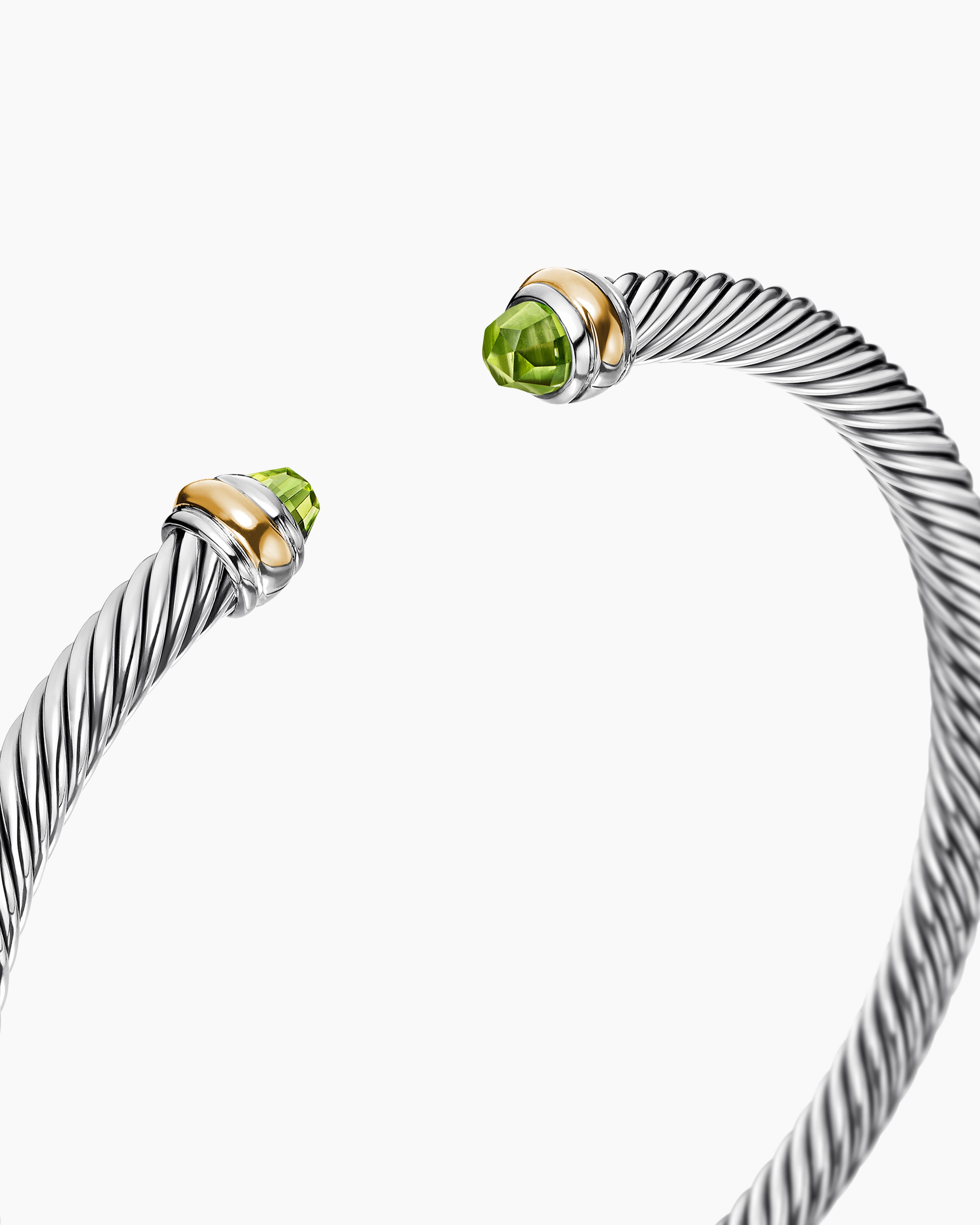Classic Cable Bracelet Sterling Silver with 18K Yellow Gold and Peridot, 4mm