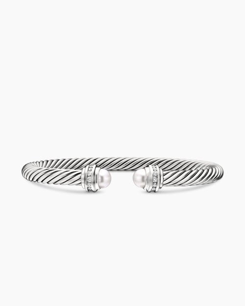Classic Cable Bracelet Sterling Silver with Pearls and Diamonds, 5mm