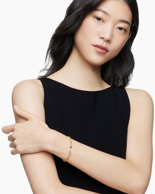 By hand, David shaped 50 feet of gold wire into the first Cable cuff, with pink tourmaline and emerald end caps. Today, the twisted Cable motif appears throughout our collections—from rings to pendants to sculptural chain links, and often in striking combinations of polished mixed metals, with brilliant gemstone detail—unifying our iconic, yet ever-evolving designs.