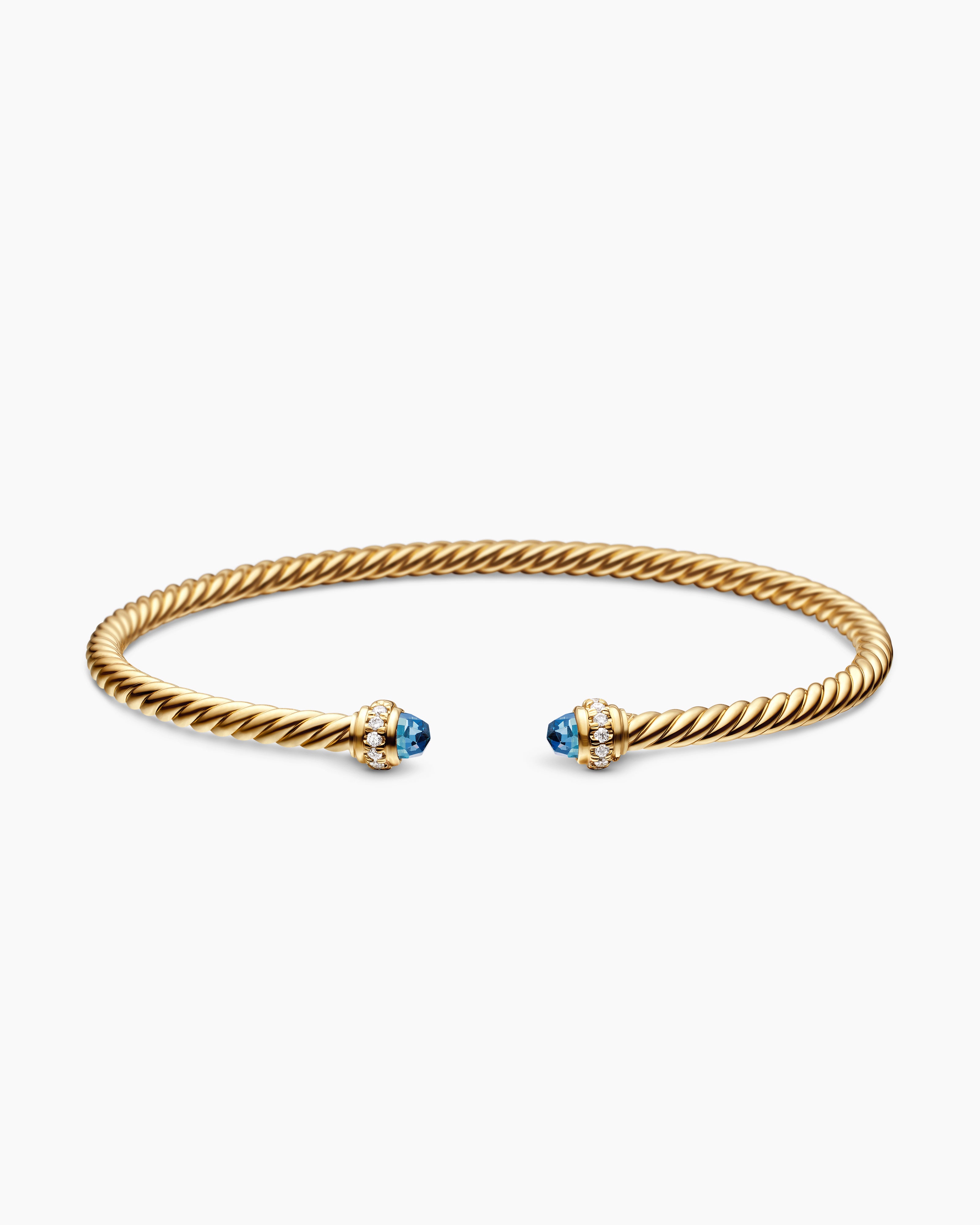 Classic Cablespira® Bracelet 18K Yellow Gold with Hampton Blue Topaz and Diamonds, 3mm