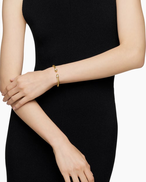 By hand, David shaped 50 feet of gold wire into the first Cable cuff, with pink tourmaline and emerald end caps. Today, the twisted Cable motif appears throughout our collections—from rings to pendants to sculptural chain links, and often in striking combinations of polished mixed metals, with brilliant gemstone detail—unifying our iconic, yet ever-evolving designs.