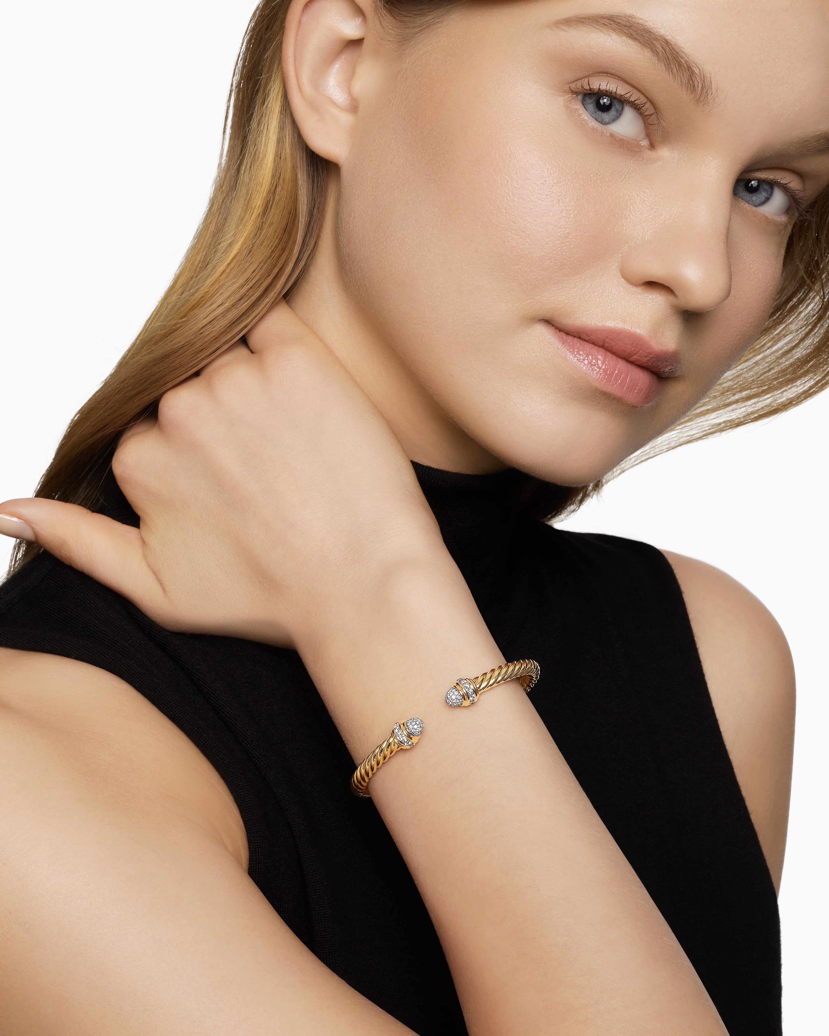 Cable, David Yurman’s artistic signature, began with a bracelet hand-twisted from 50 feet of wire. Cablespira® evolves the original twisted helix by combining artistry with innovation, using a patented technology that gives each piece a uniquely flexible feel.