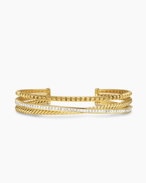 Crossover Trio Three Row Cuff Bracelet 18K Yellow Gold with Diamonds, 11mm