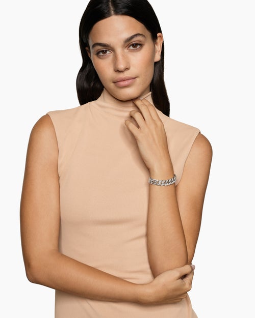 Curb Chain Bracelet Sterling Silver with Diamonds, 11.5mm