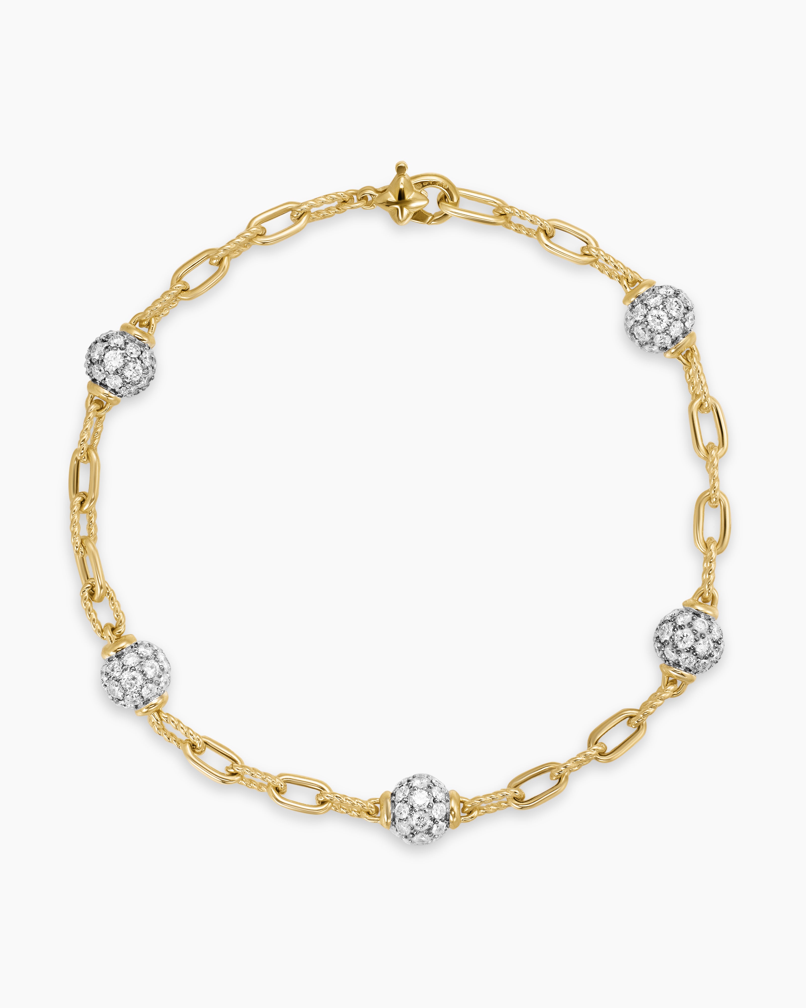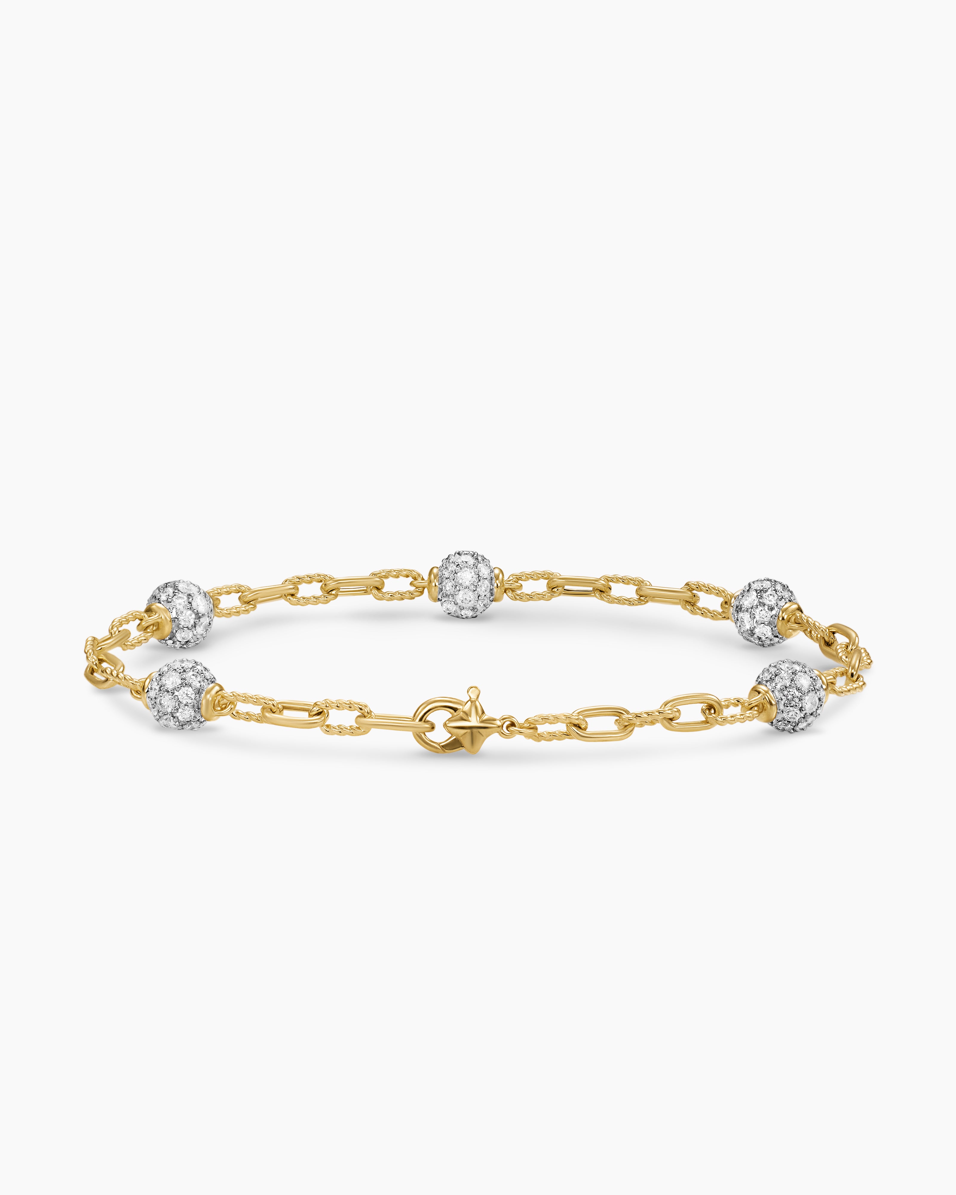 DY Madison® Pavé Bead Chain Bracelet 18K Yellow Gold with Diamonds, 3mm