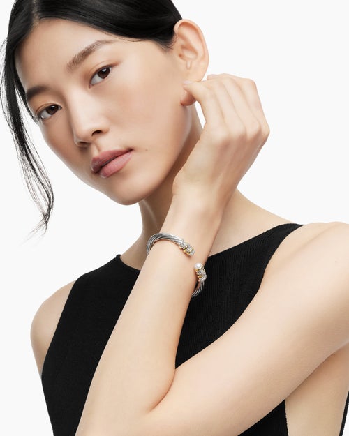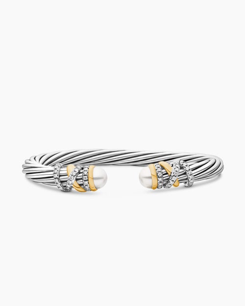 Helena Bracelet Sterling Silver with 18K Yellow Gold, Pearls and Diamonds, 6mm