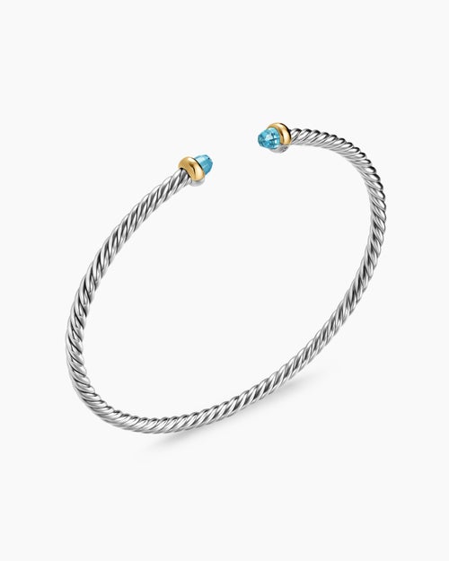 Micro Cable Flex® Bracelet Sterling Silver with 14K Yellow Gold and Blue Topaz, 2.6mm
