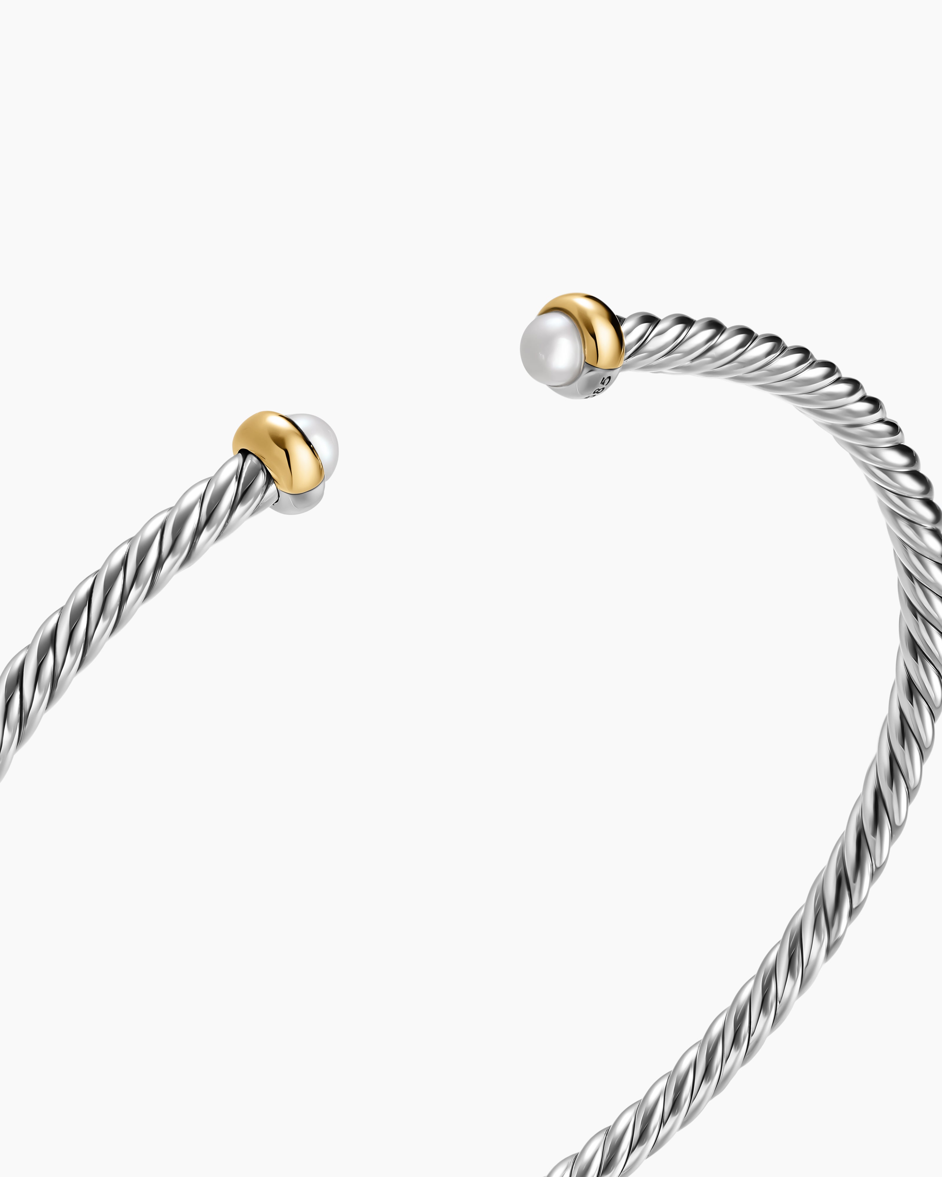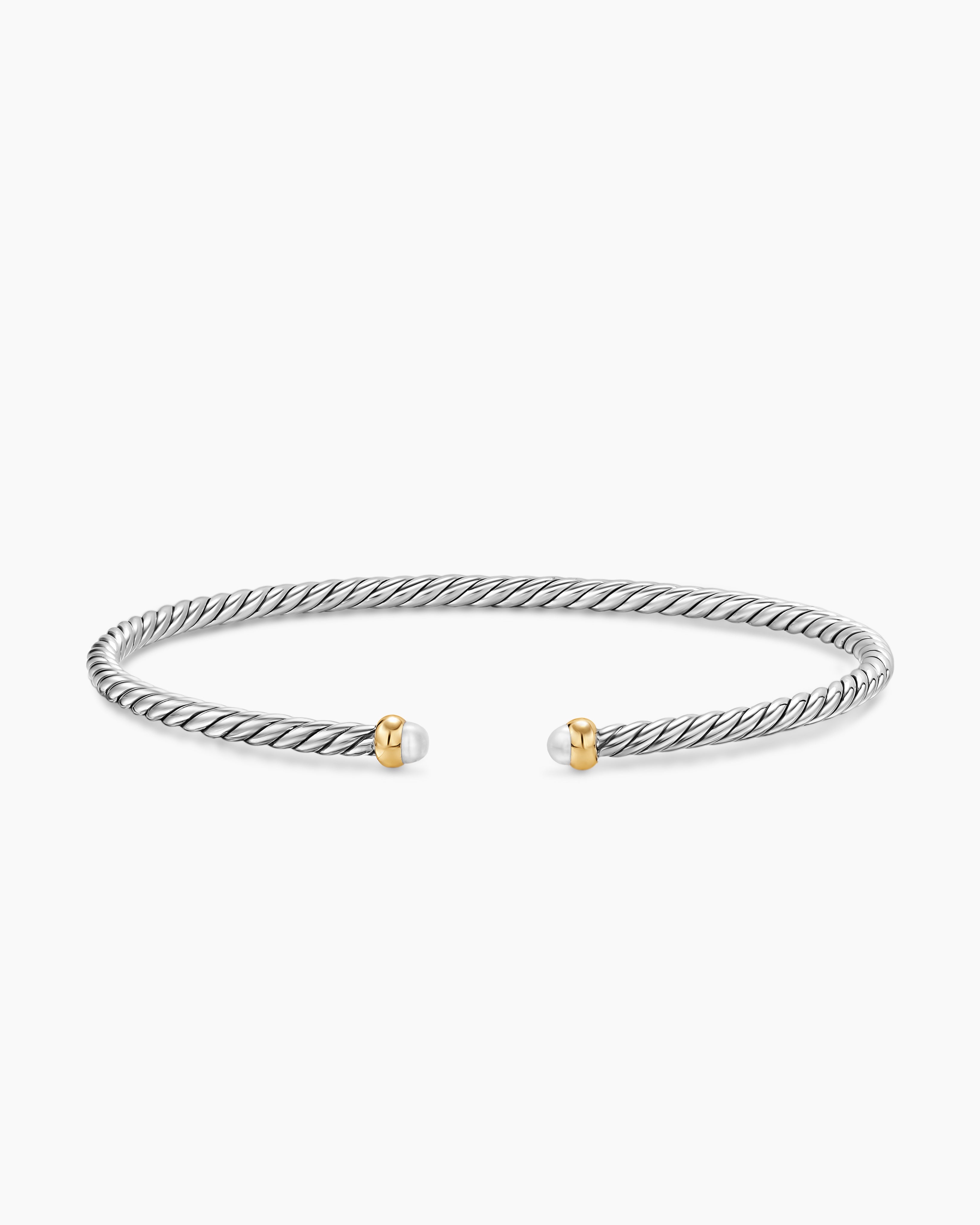 Micro Cable Flex® Bracelet Sterling Silver with 14K Yellow Gold and Pearls, 2.6mm