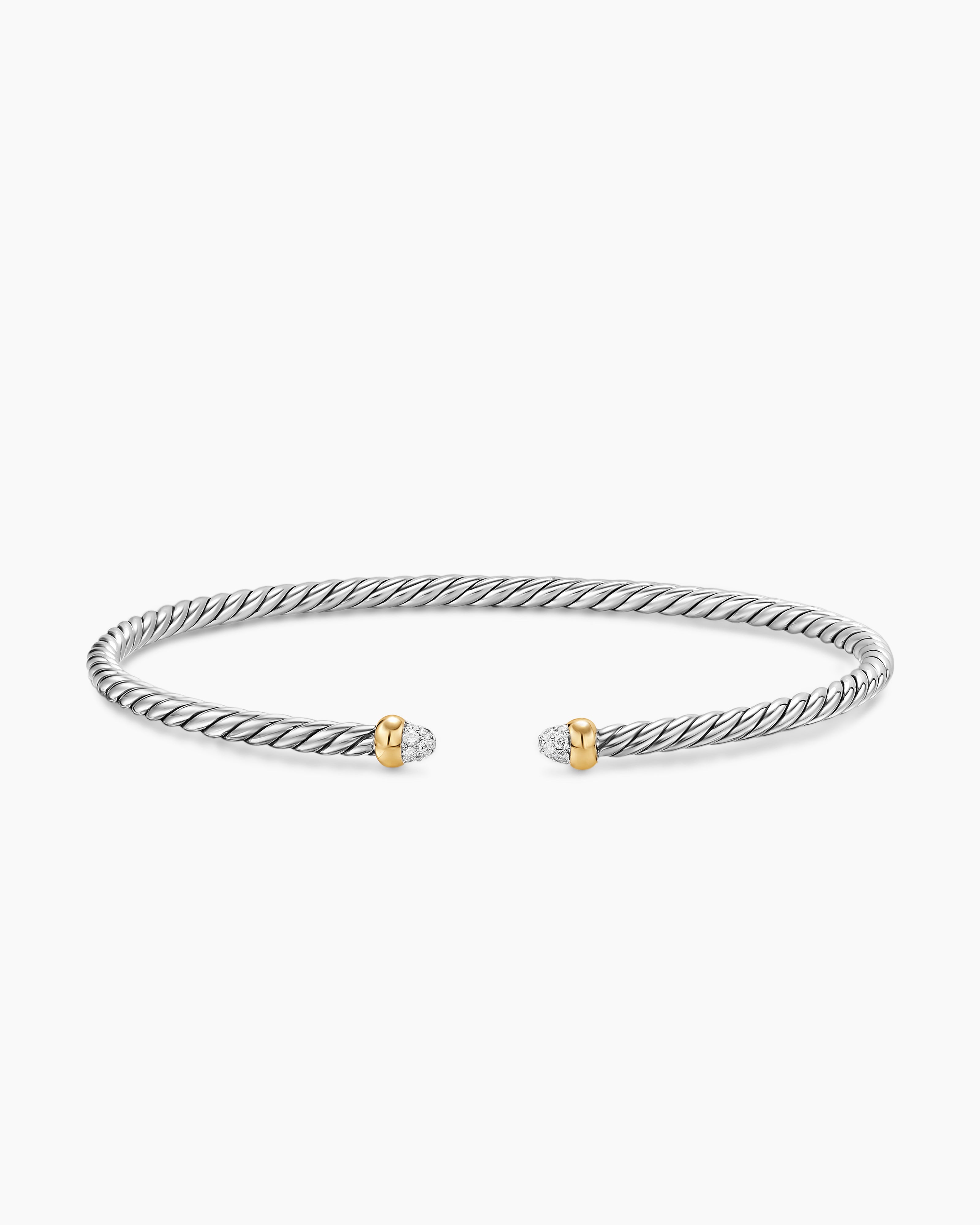 Micro Cable Flex® Bracelet Sterling Silver with 14K Yellow Gold and Pavé Diamond Domes, 2.6mm