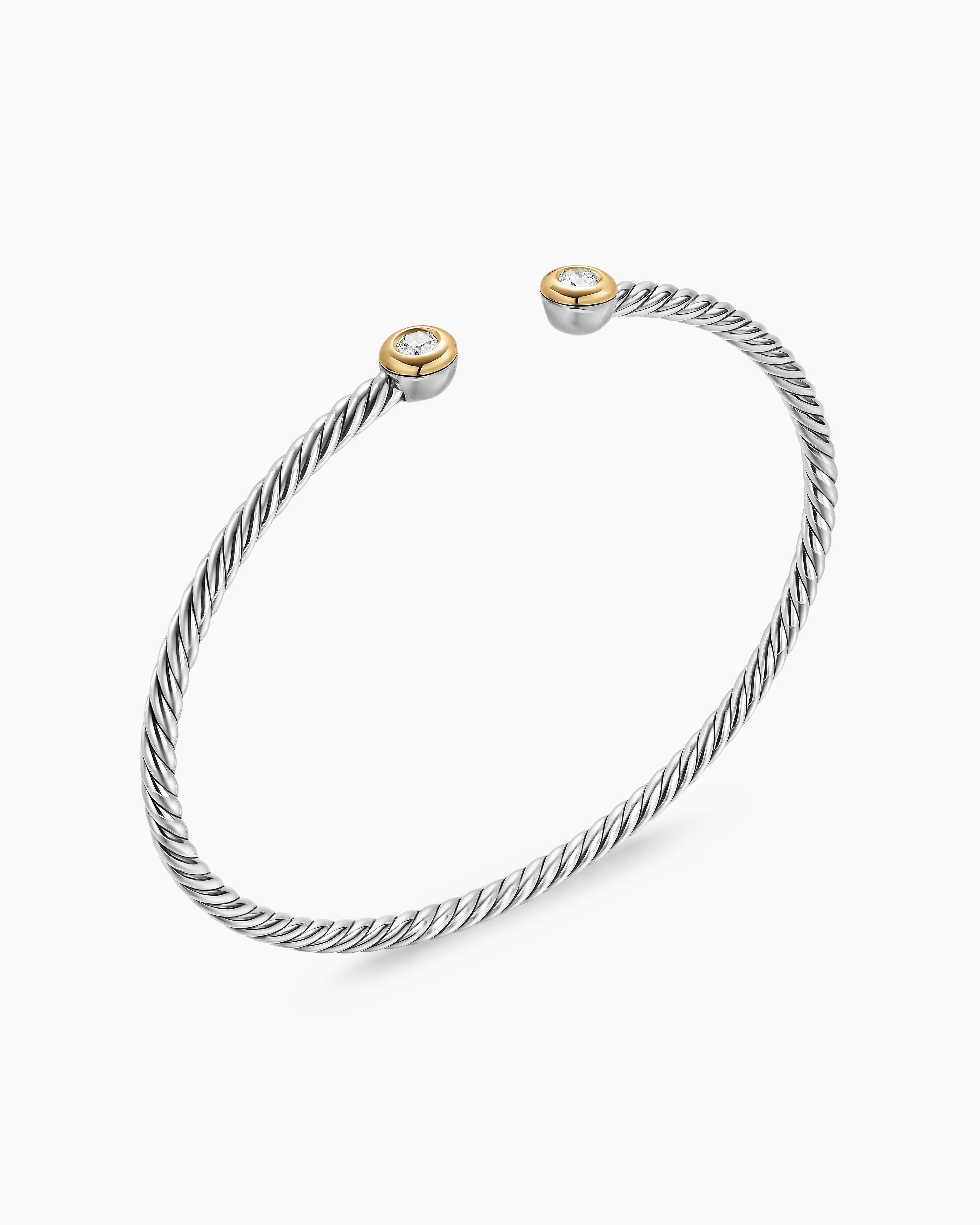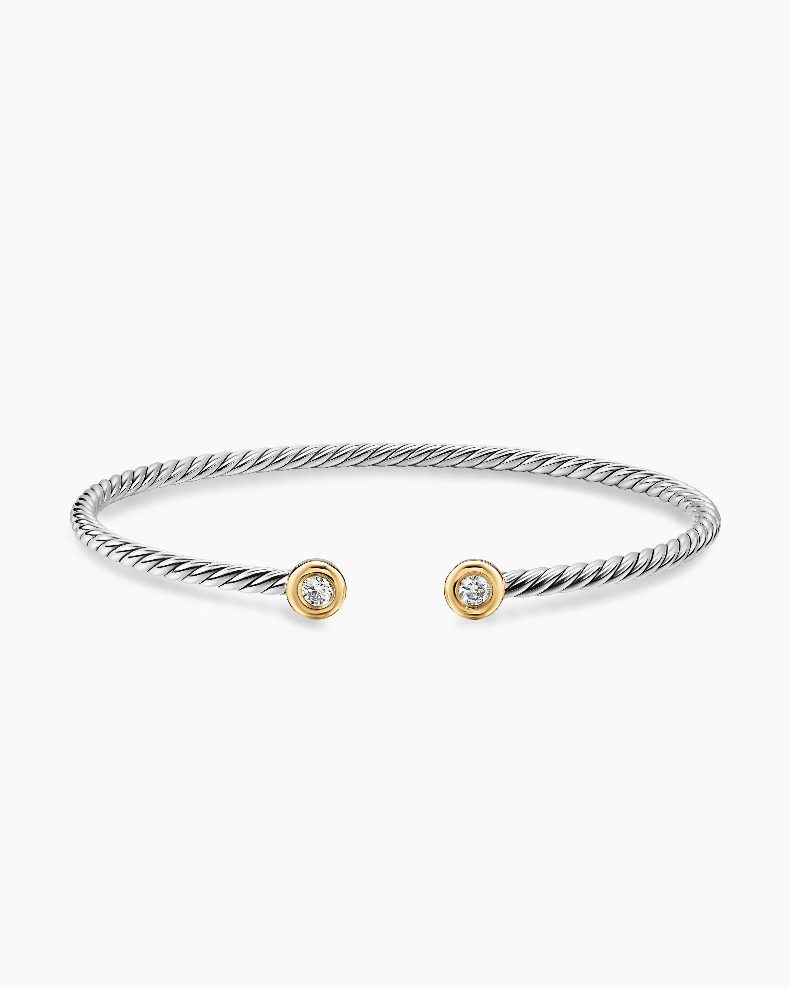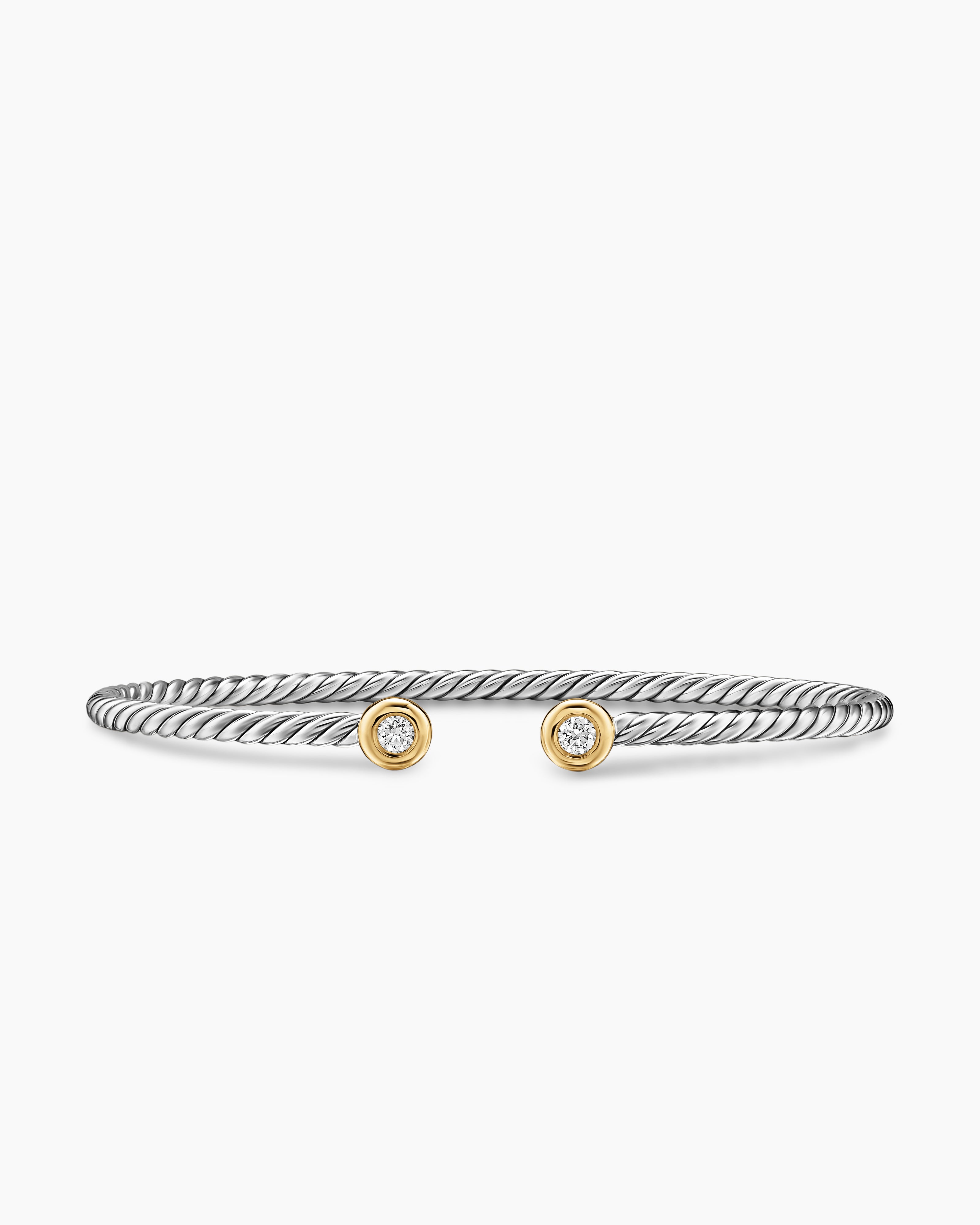 Micro Cable Flex® Round Bracelet Sterling Silver with 14K Yellow Gold and Diamonds, 2.6mm