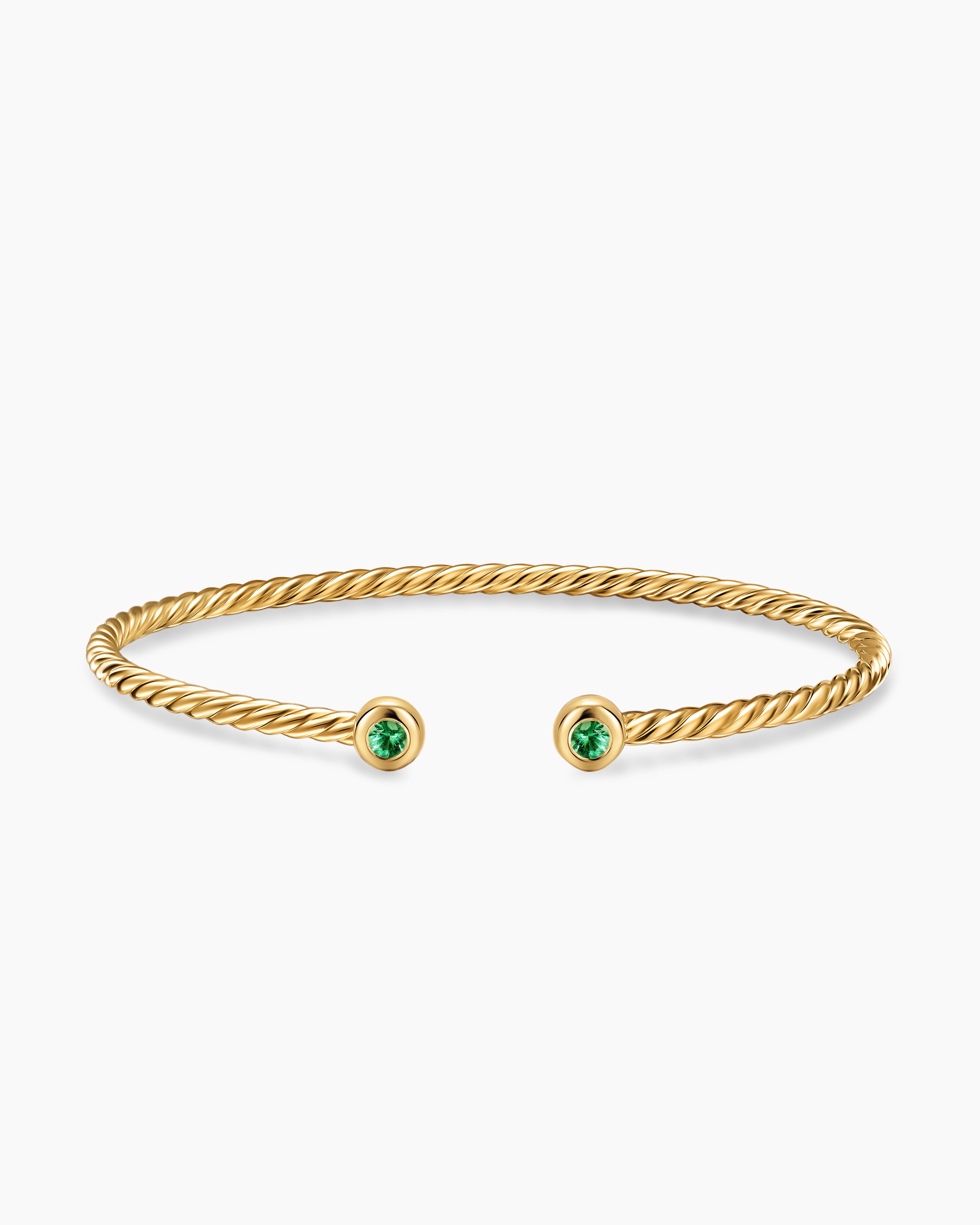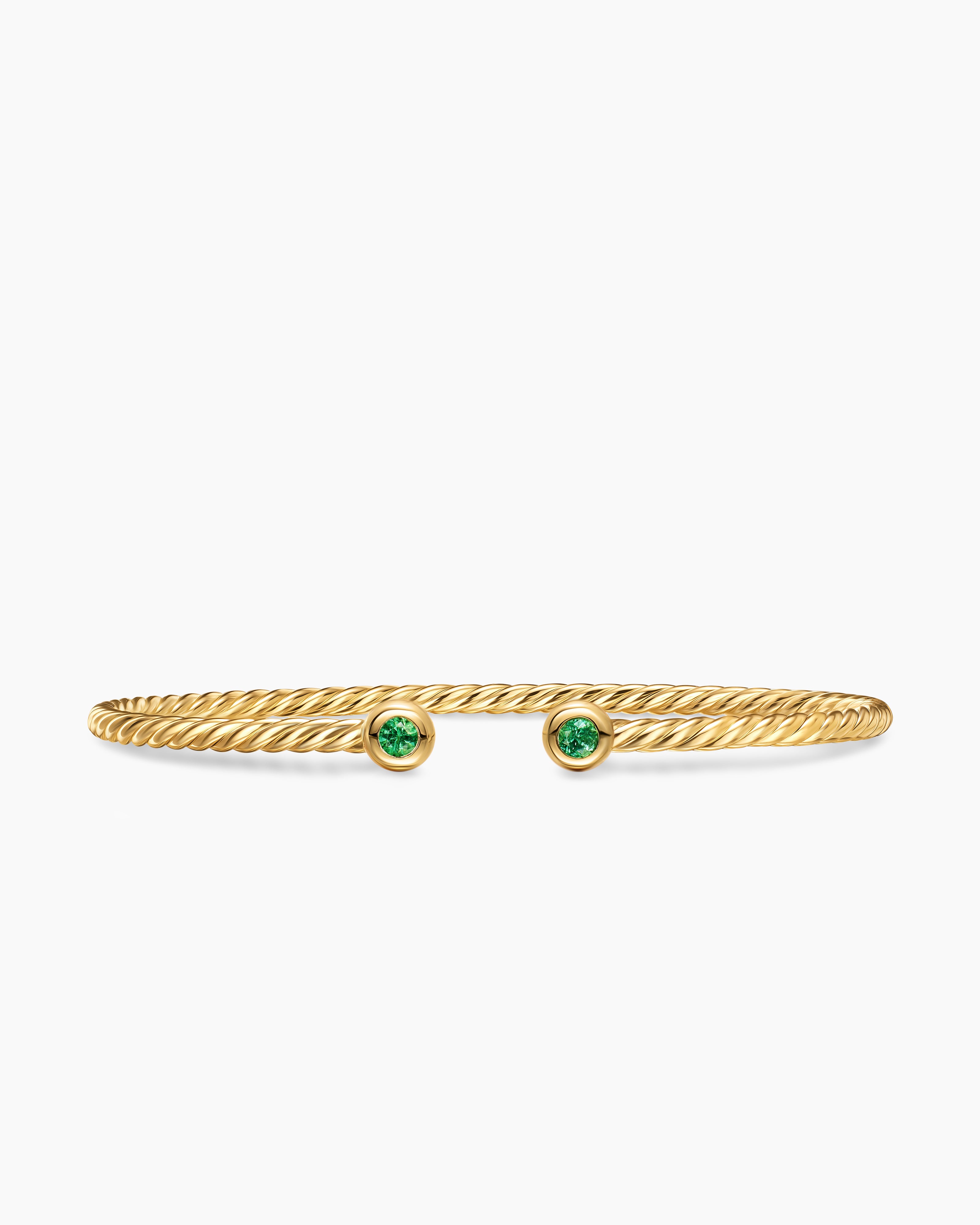 Micro Cablespira® Flex Round Bracelet 18K Yellow Gold with Emeralds, 2.6mm