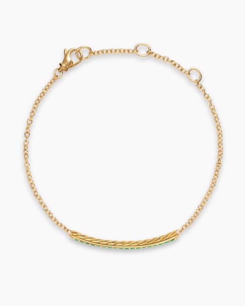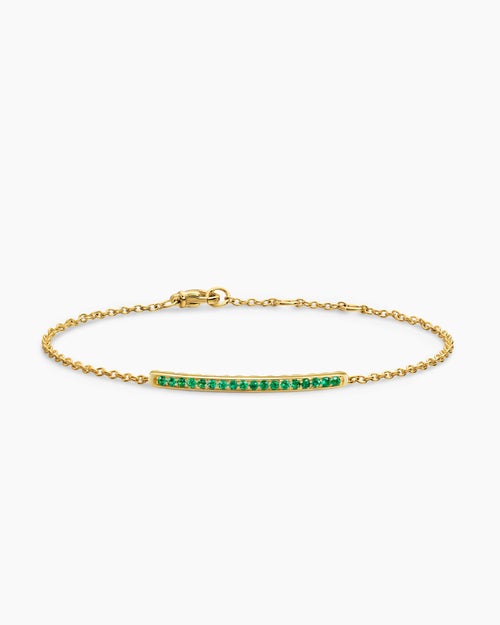Petite Pavé Bar Bracelet 18K Yellow Gold with Emeralds, 1.7mm