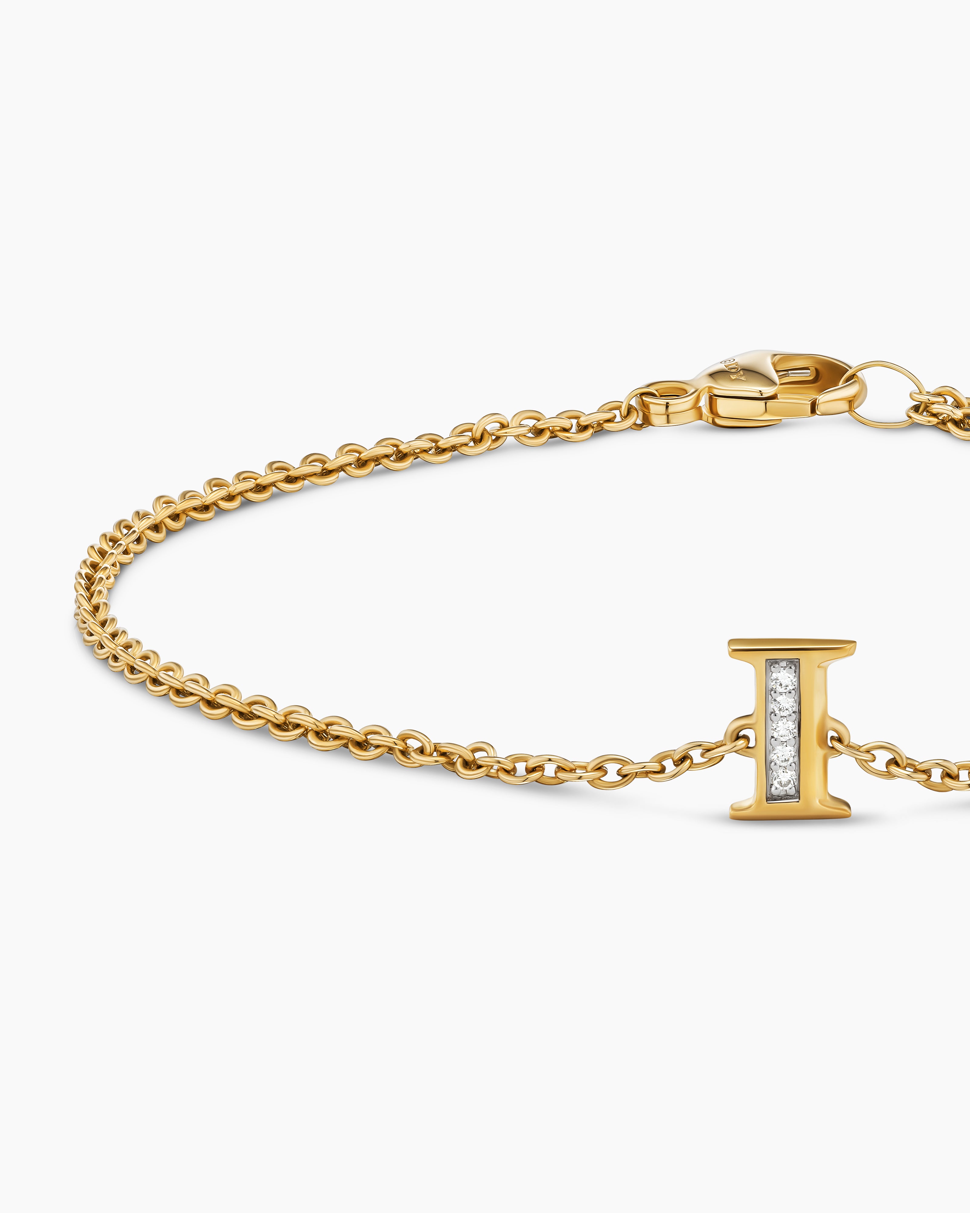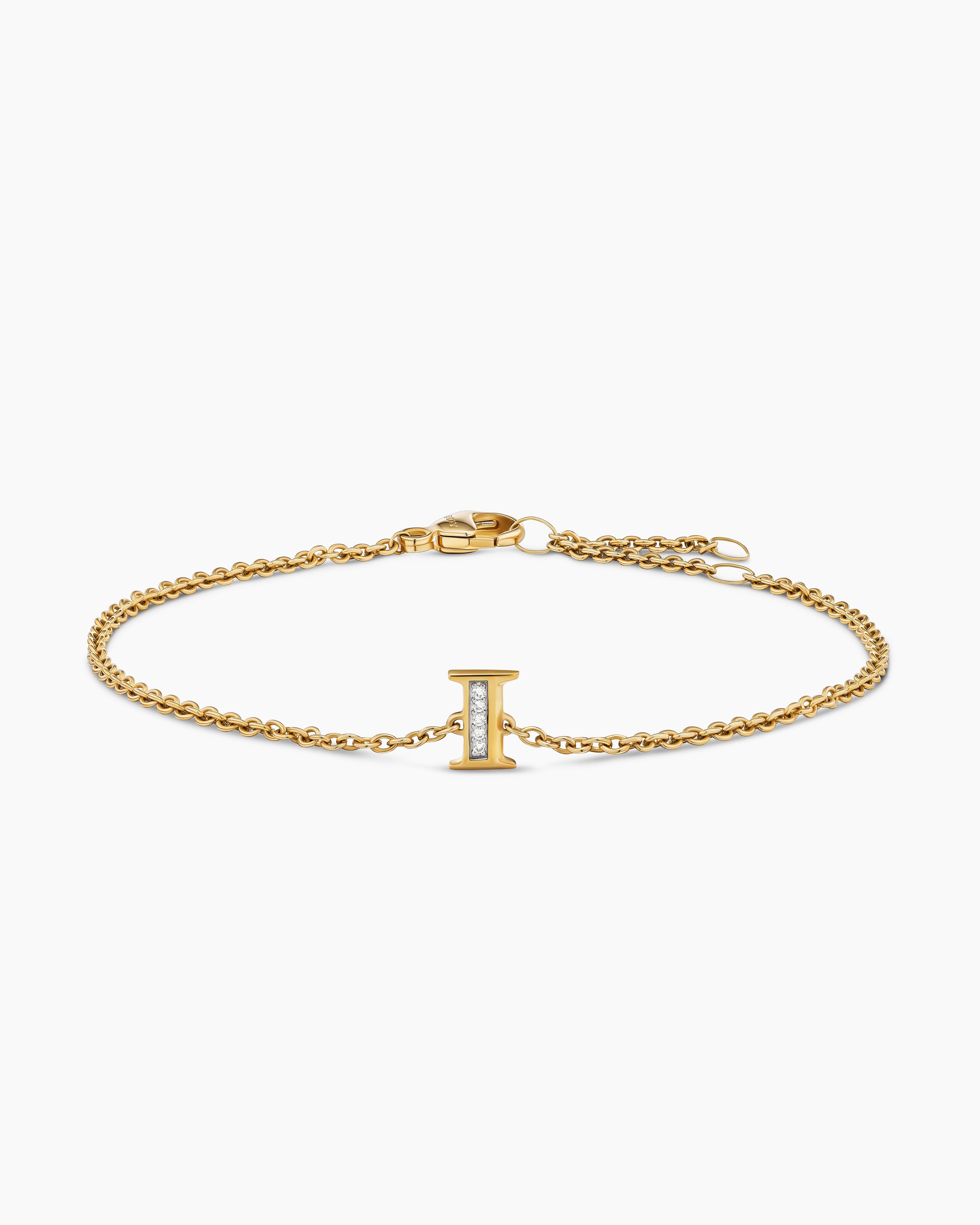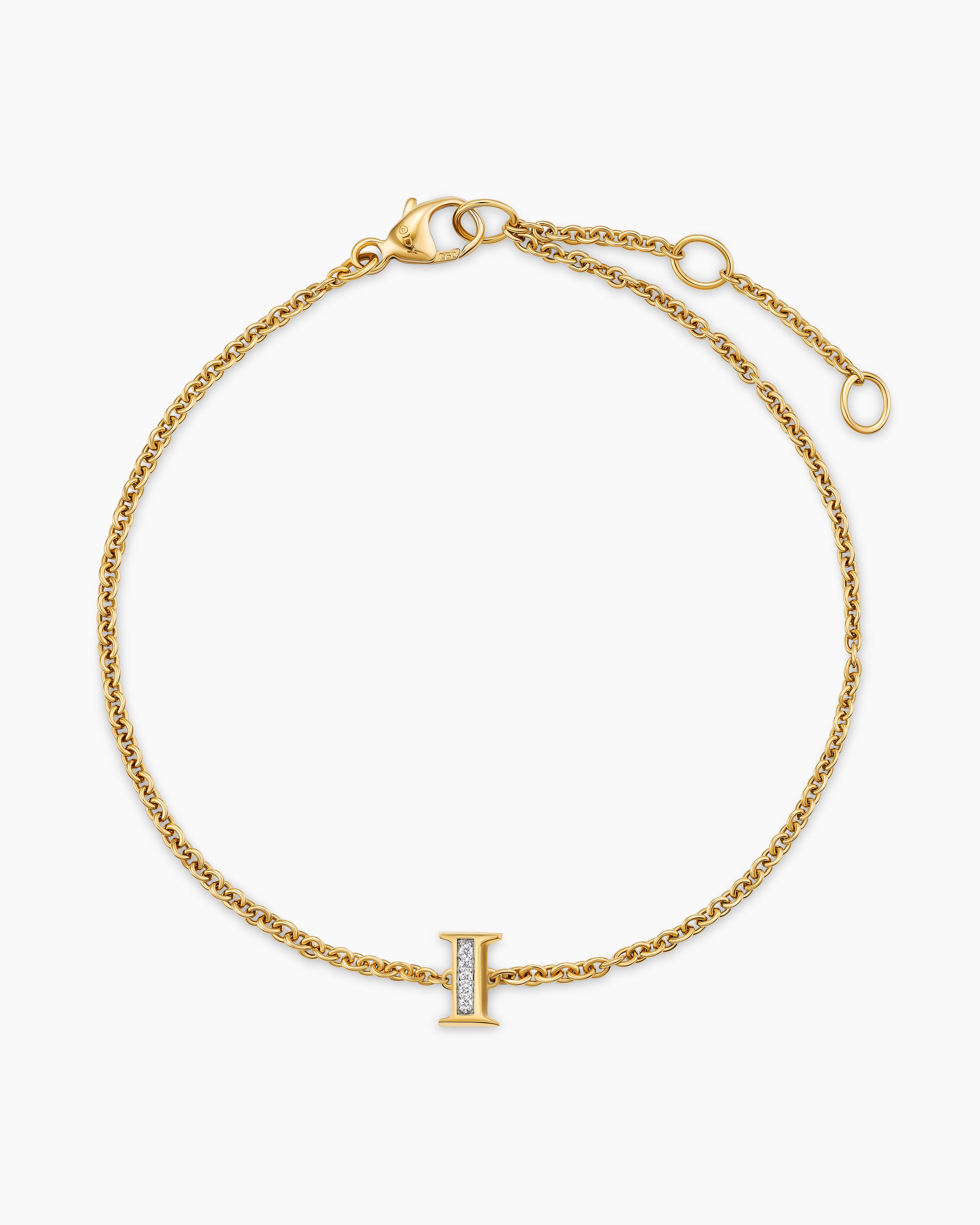 Petite Pavé Initial Chain Bracelet 18K Yellow Gold with Diamond I