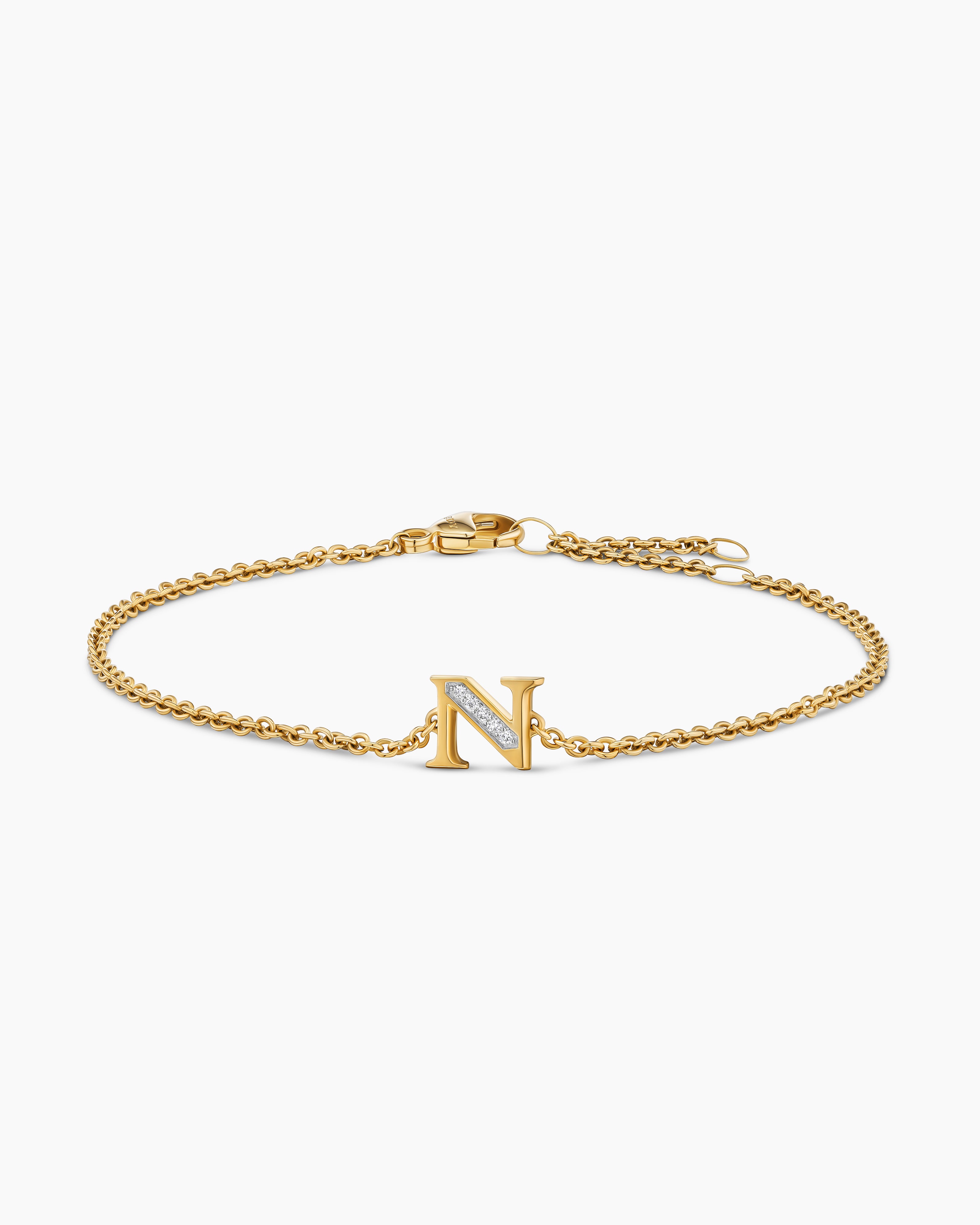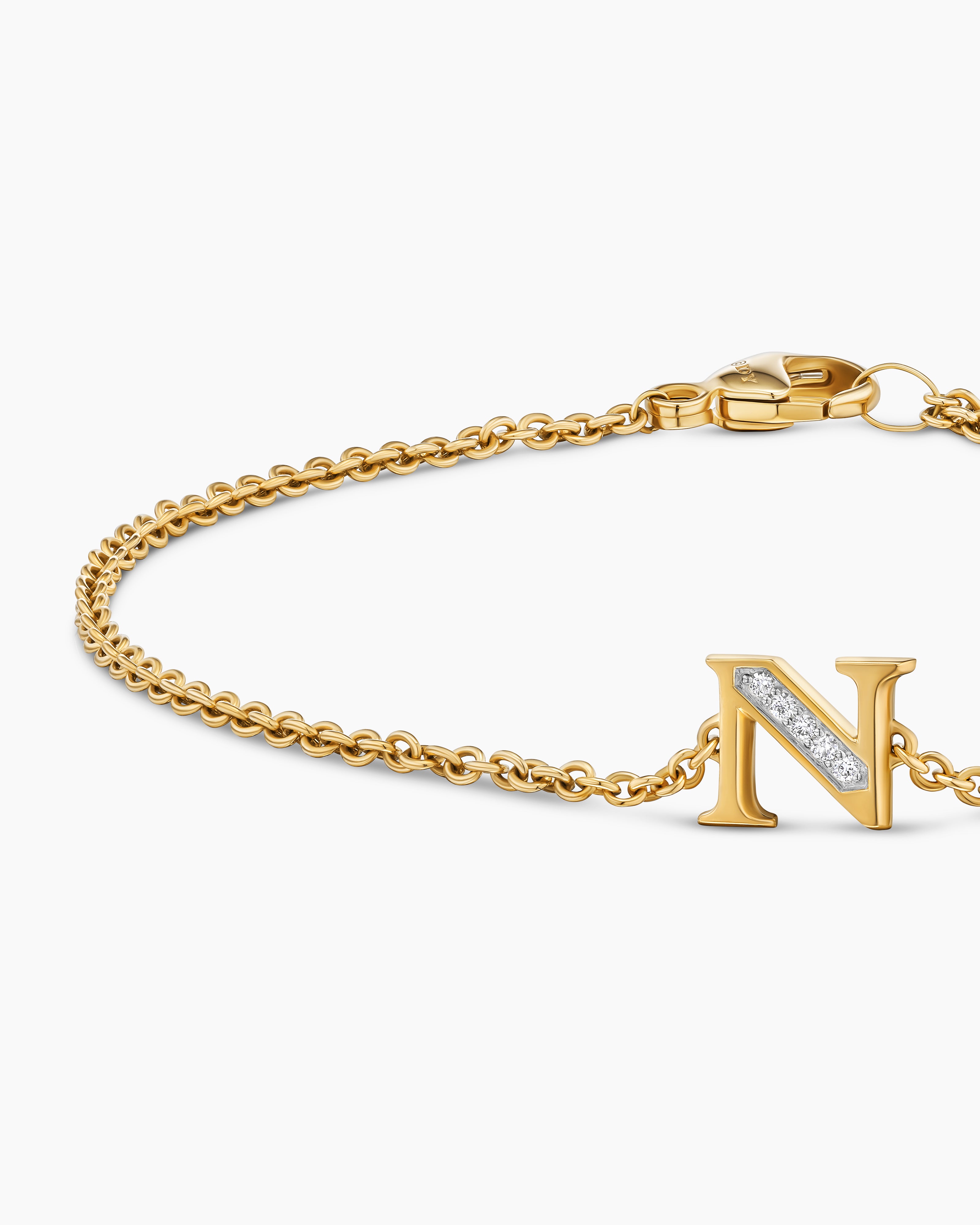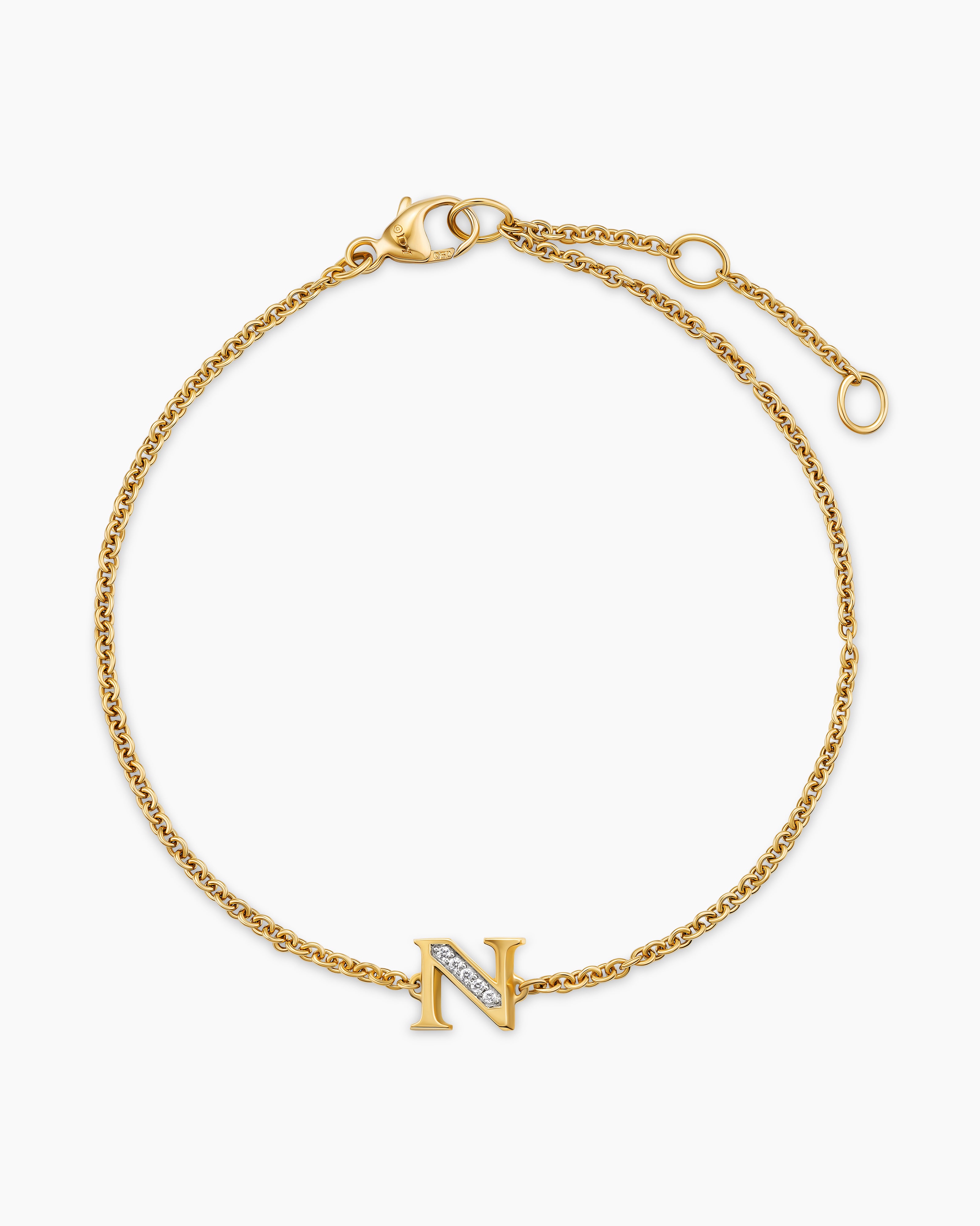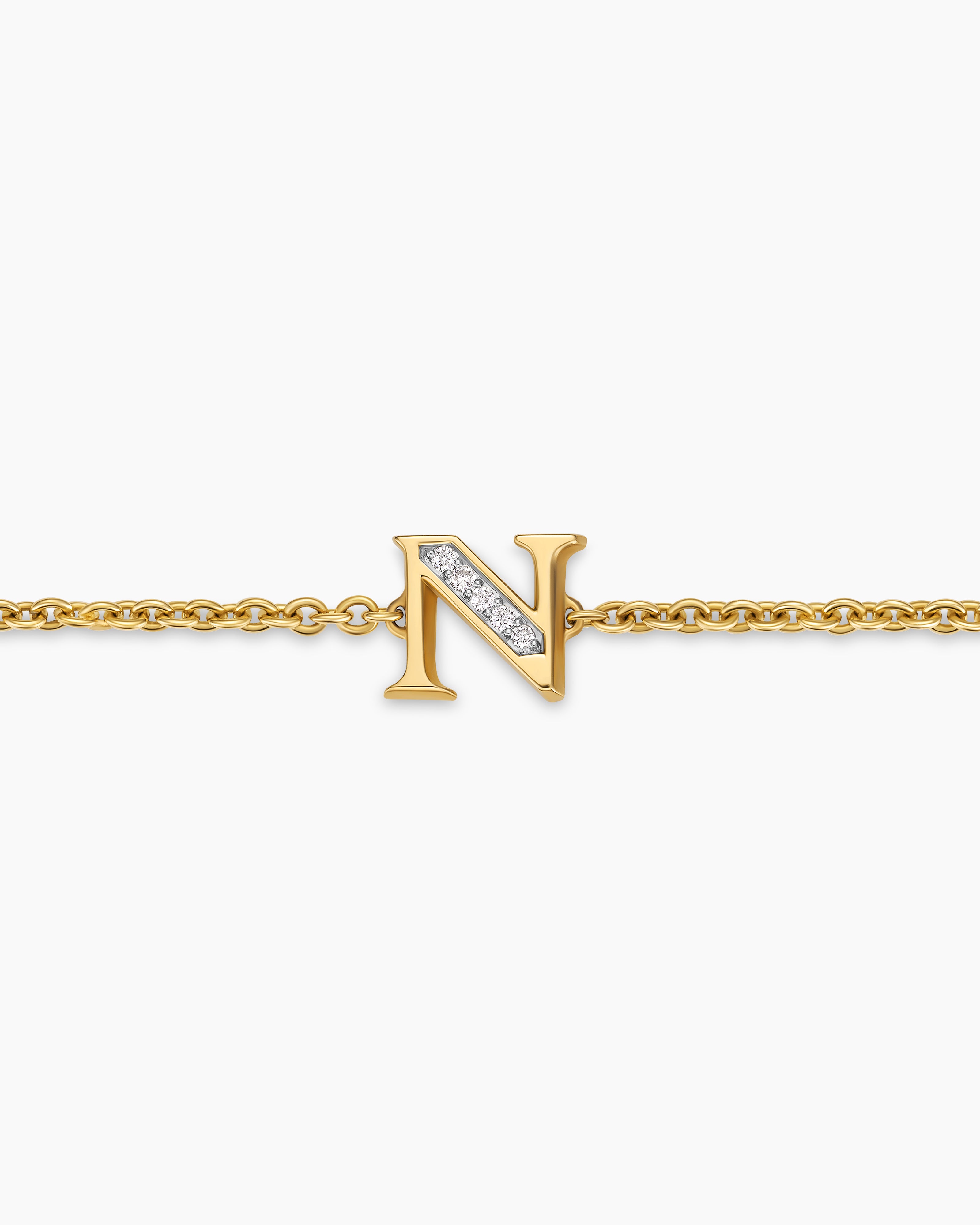Petite Pavé Initial Chain Bracelet 18K Yellow Gold with Diamond N