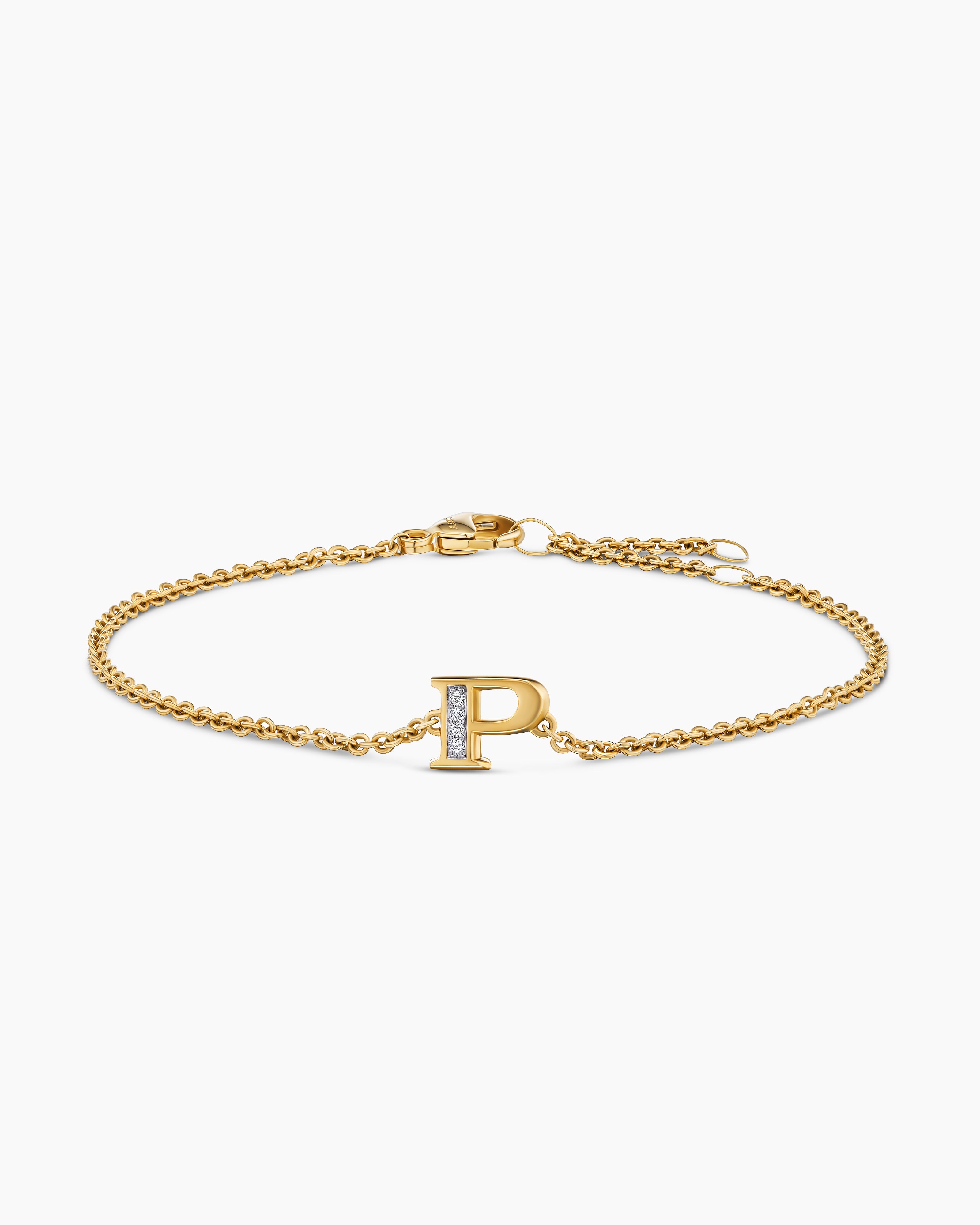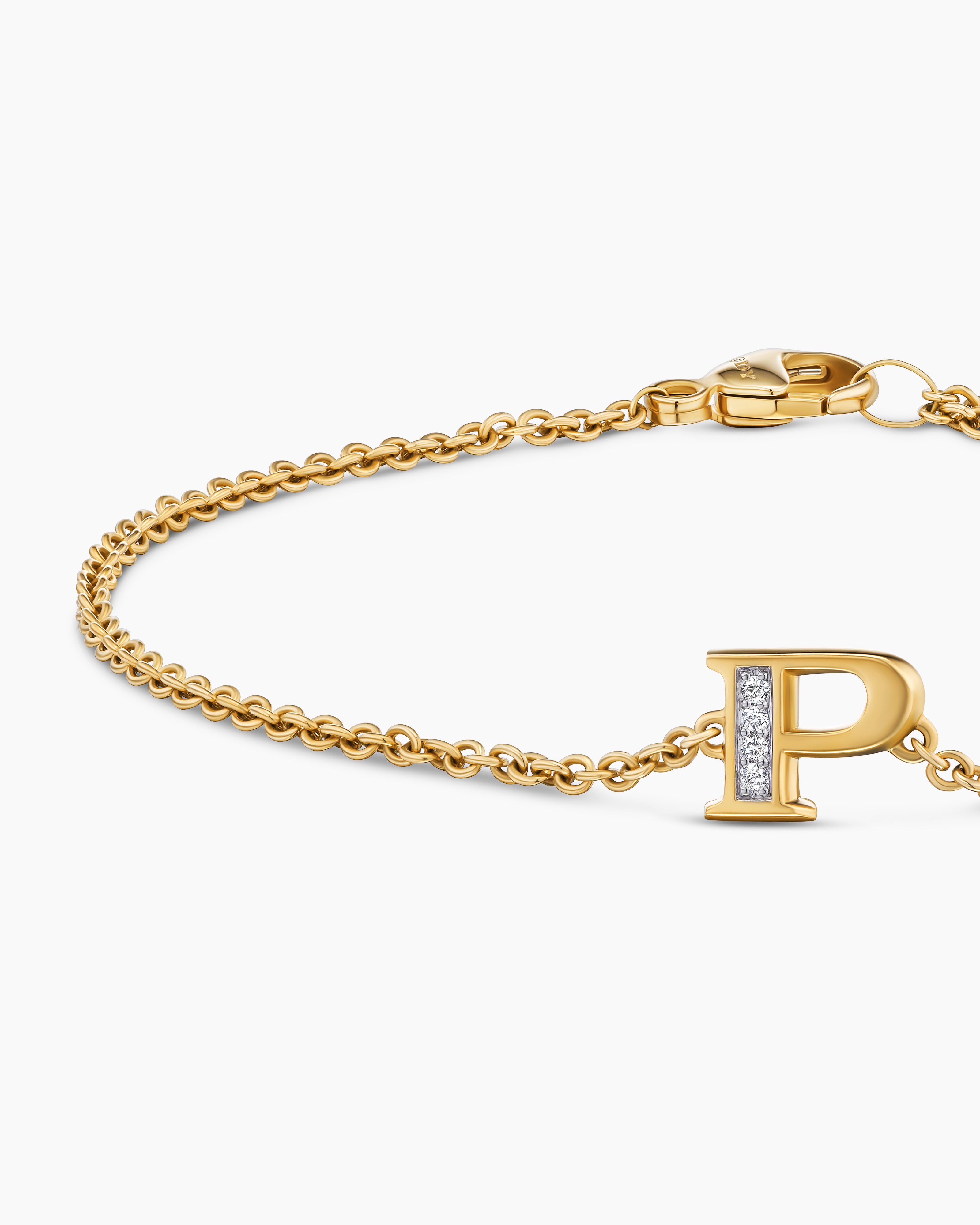 Petite Pavé Initial Chain Bracelet 18K Yellow Gold with Diamond P