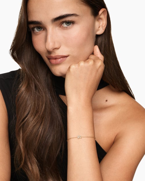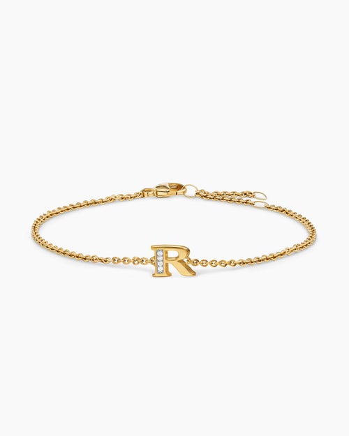 Petite Pavé Initial Chain Bracelet 18K Yellow Gold with Diamond R